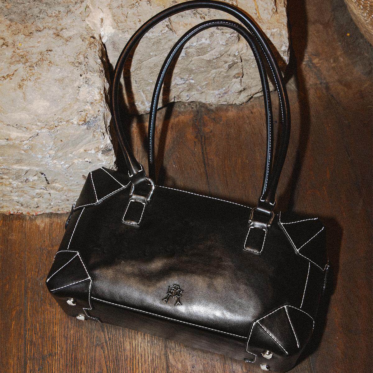 FROM ARACHNID油蜡皮牛纹小众设计师高级感明线包保龄球包长柄包