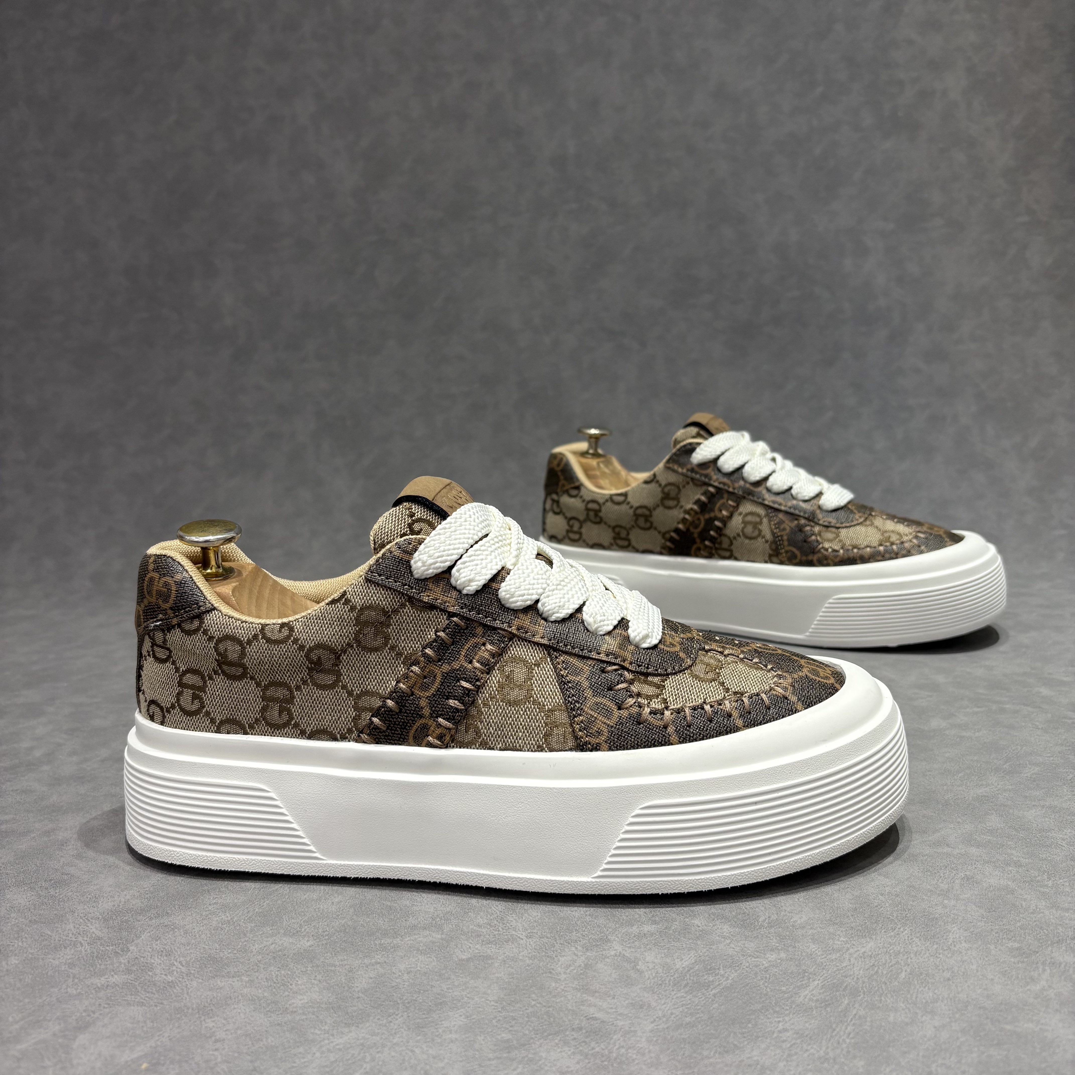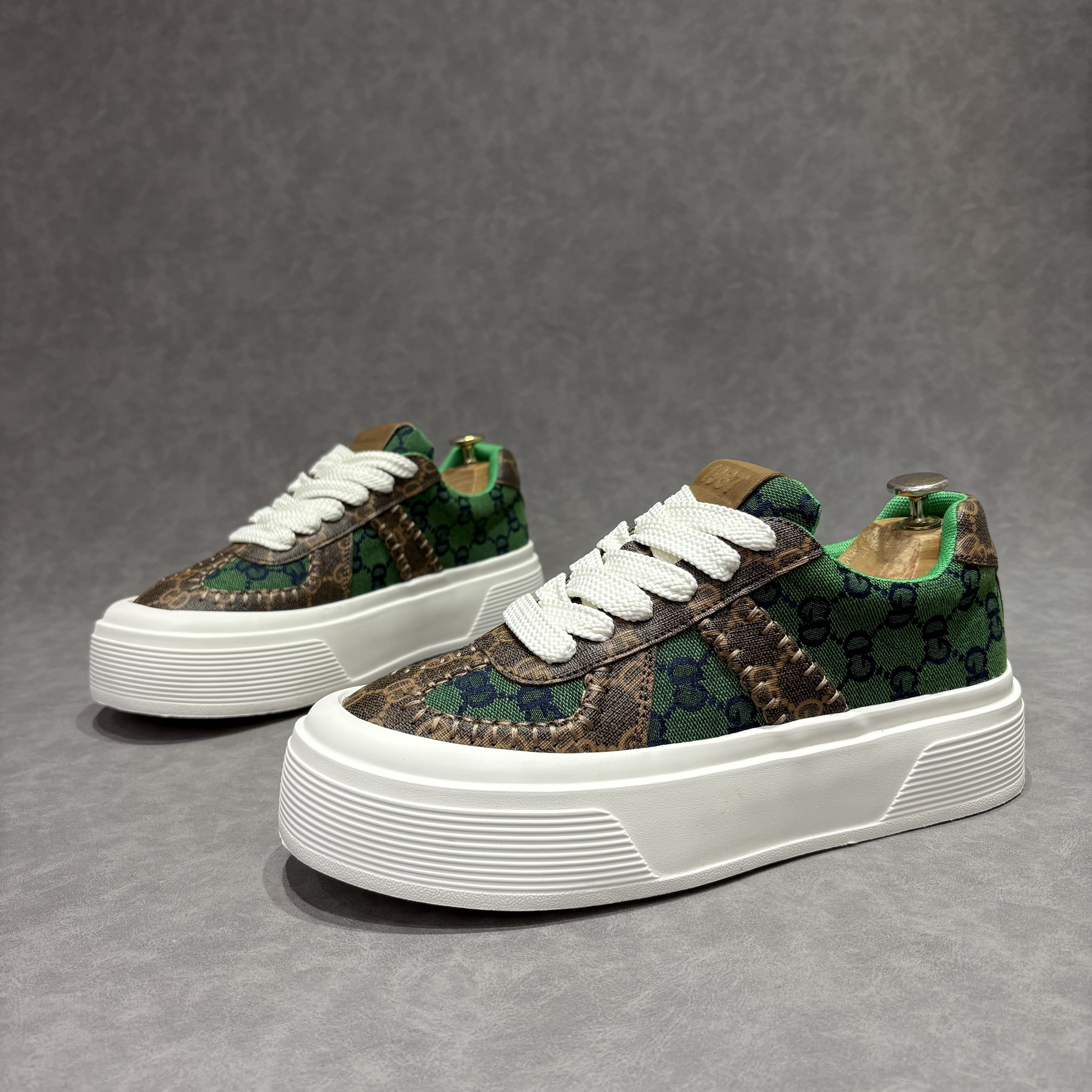 字母印花潮流男士低帮板鞋春季新款拼接布面白底休闲鞋超轻舒适鞋