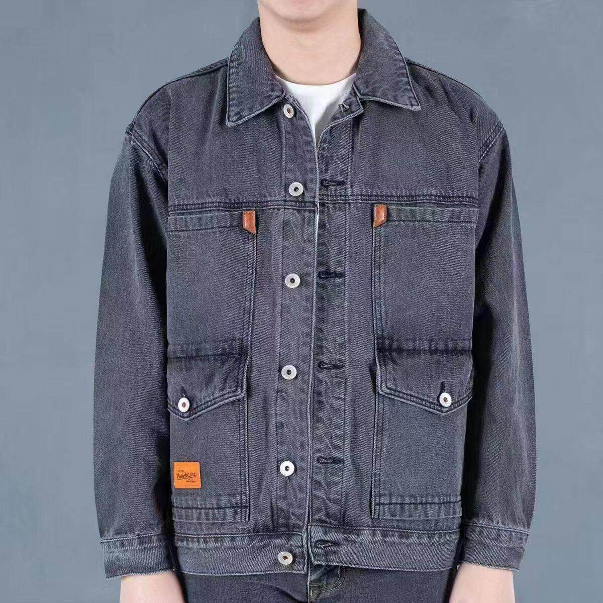 大码耐磨重磅工装牛仔外套男建筑工地干活穿的衣服劳保多口袋夹克