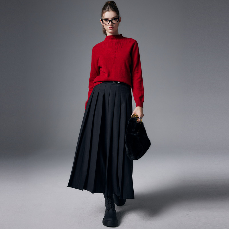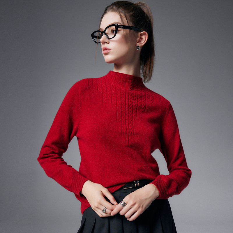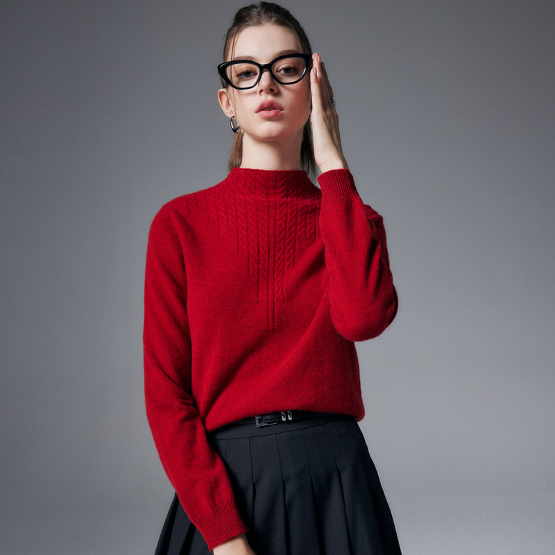 【自带领绞花纯羊绒衫女】帕罗25秋冬新款针织半高领套头内搭毛衣