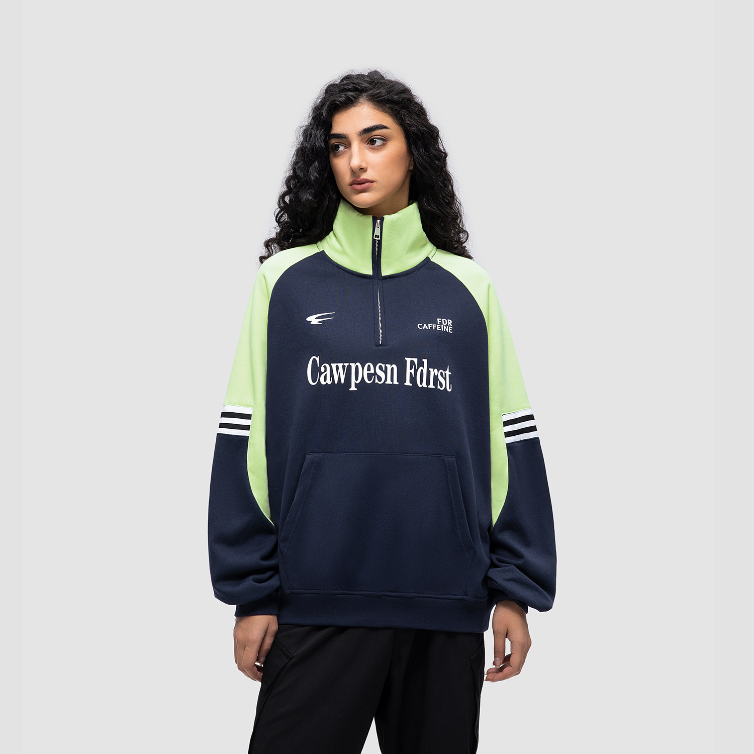 淘宝FDR 国潮拼接高领半拉链卫衣男女春春季美式高街情侣宽松插肩上衣