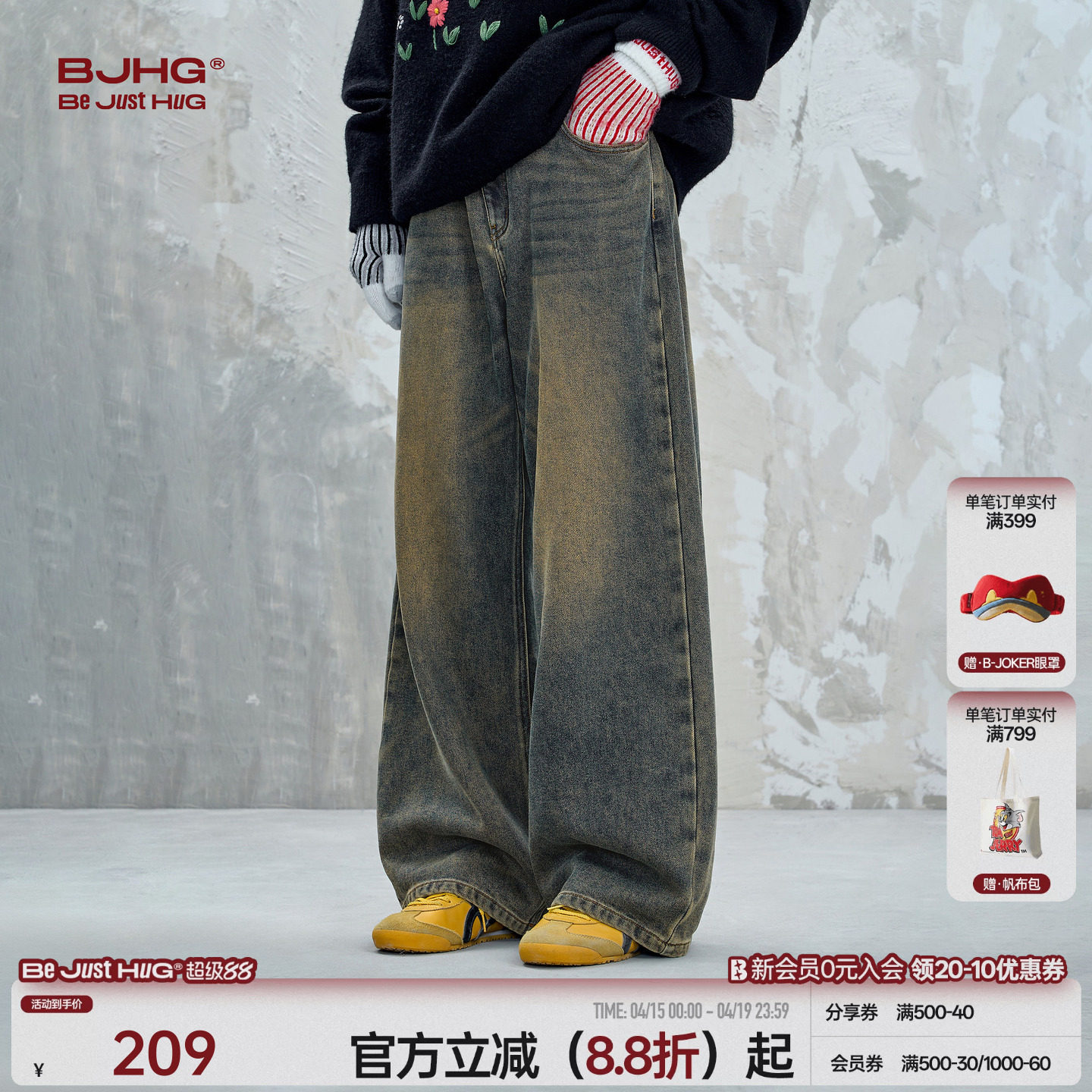--------------------- BJHG不计后果复古水洗牛仔裤男款春季美式潮牌直筒裤子男士牛仔裤 【原售价】239元 【现售价】209元 【推荐理由】