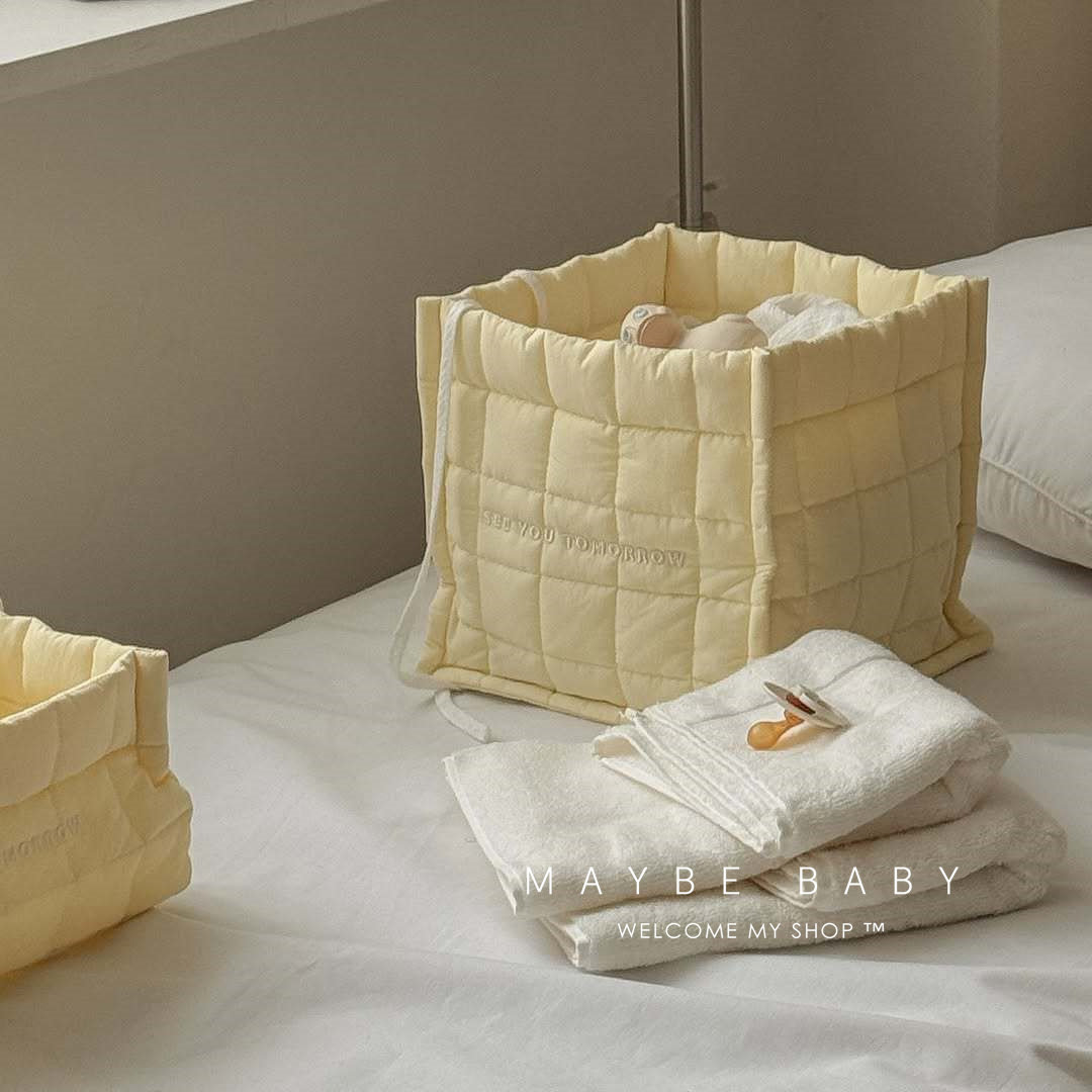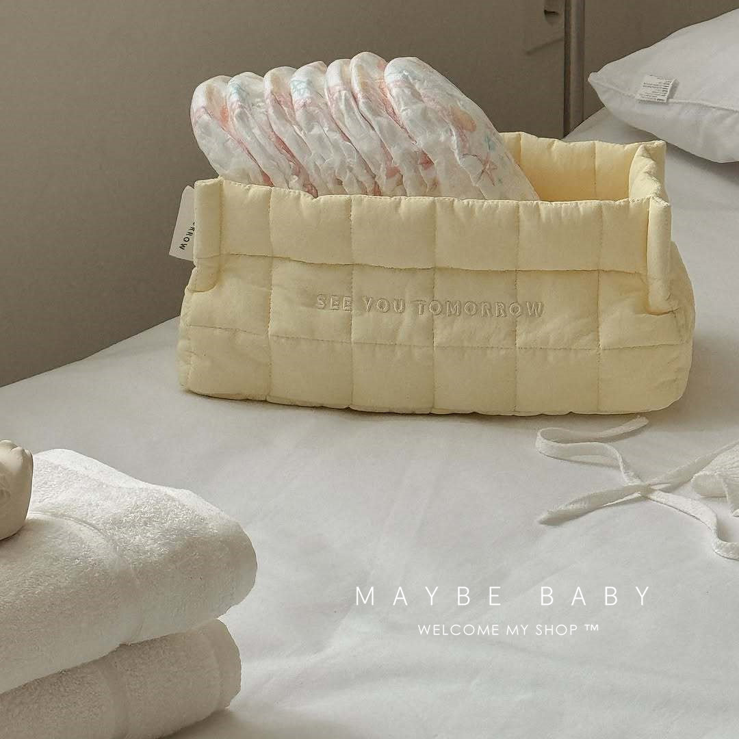 韩国ins婴儿床上尿不湿收纳盒尿布纸尿裤筐宝宝用品绗缝收纳神器