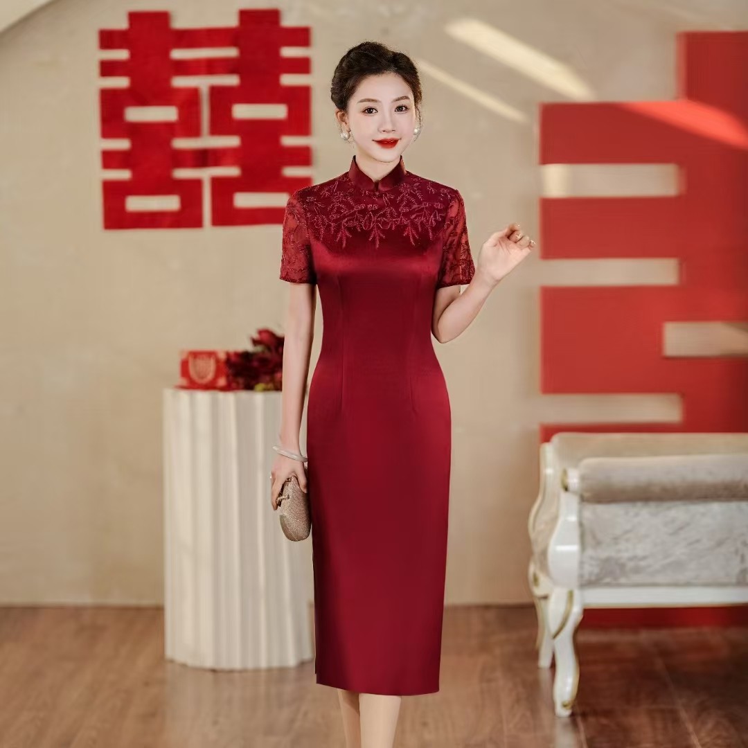 --------------------- 新款刺绣时尚高端喜婆婆婚宴红色醋酸旗袍礼服复古改良婚礼礼服 --------------------- --------------------- 【原价】598元 【券后价】486元