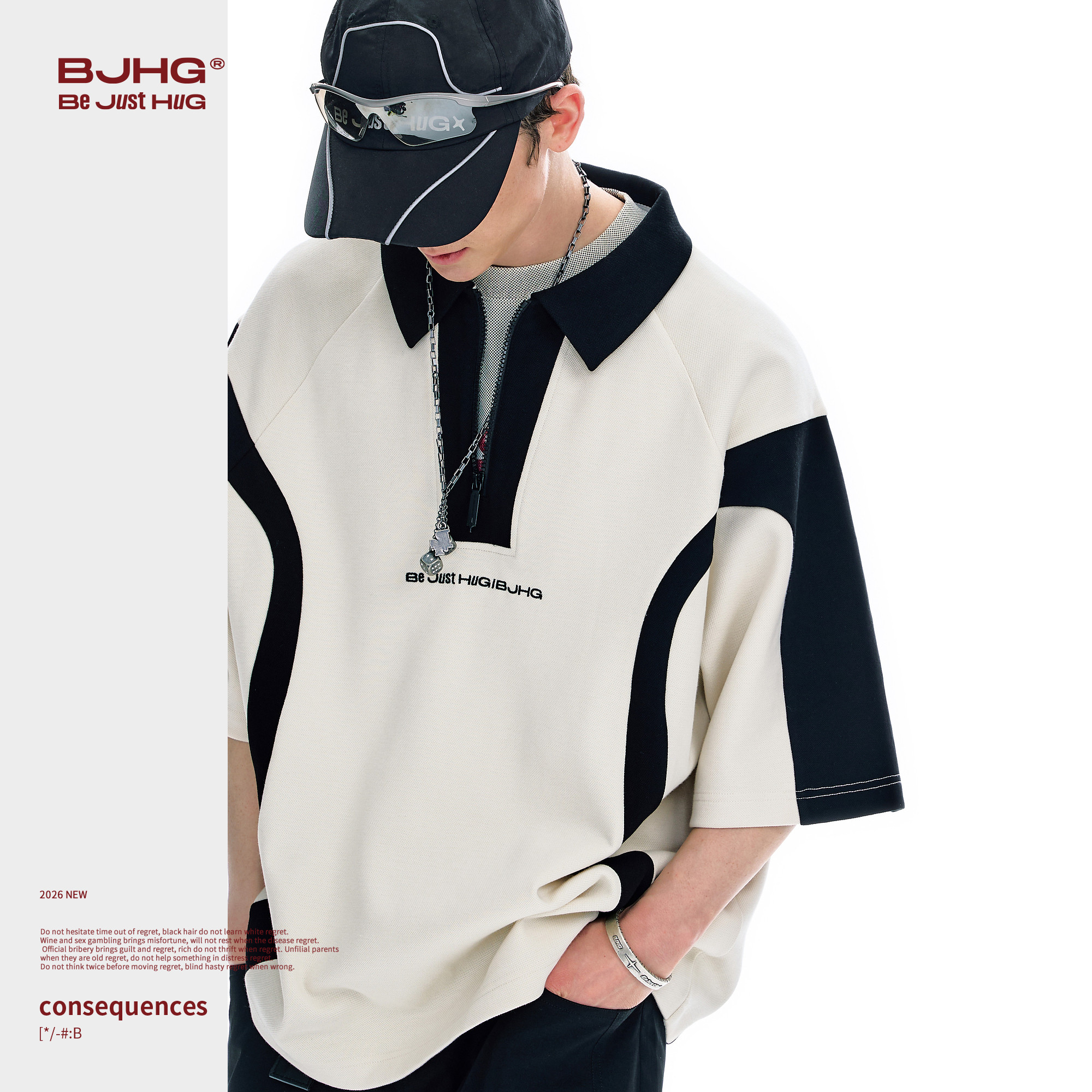 BJHG不计后果polo衫男款短袖夏季痞帅高级感潮撞色拼接针织上衣女