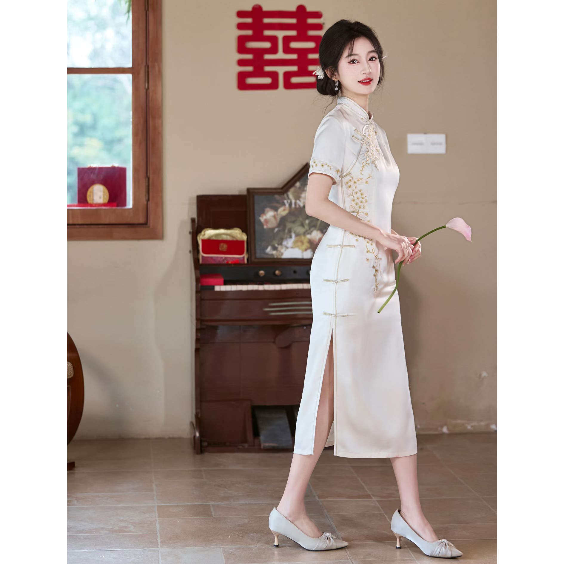 --------------------- 新中式改良旗袍女白色刺绣短袖长裙复古风气质连衣裙 【原售价】298.9元 【现售价】262.9元 【推荐理由】
