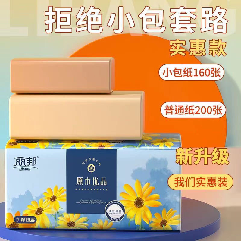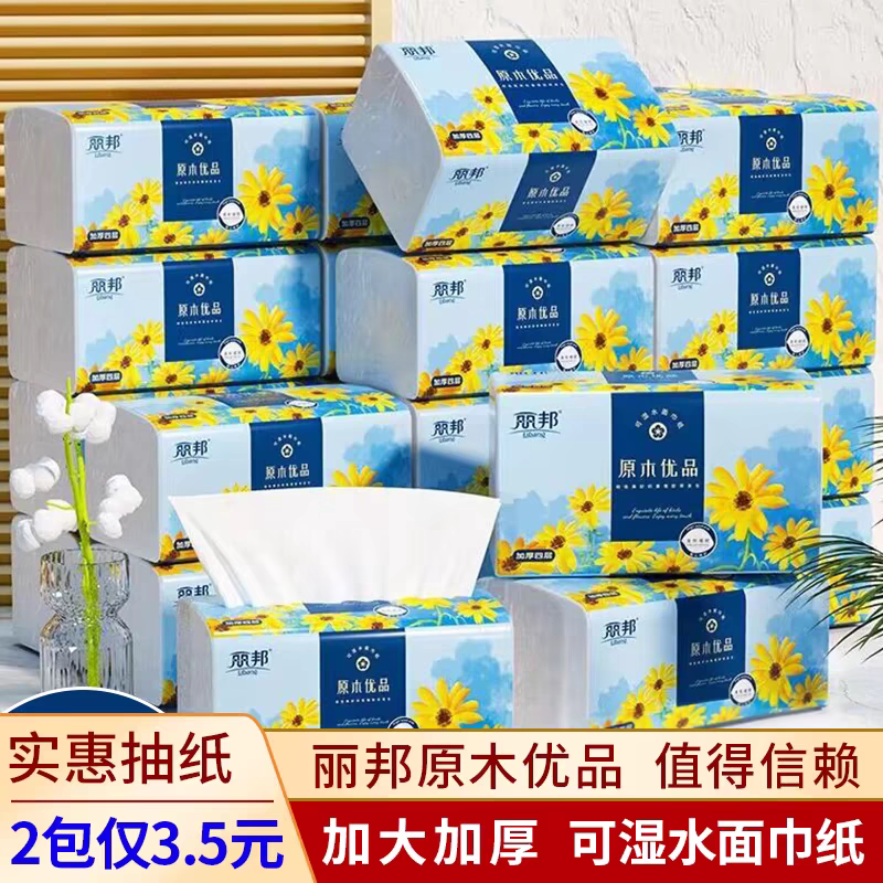 丽邦抽纸大包装加大加厚纸巾妇婴家庭实惠装湿水面巾纸餐巾纸整箱