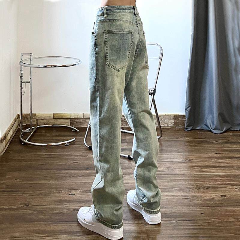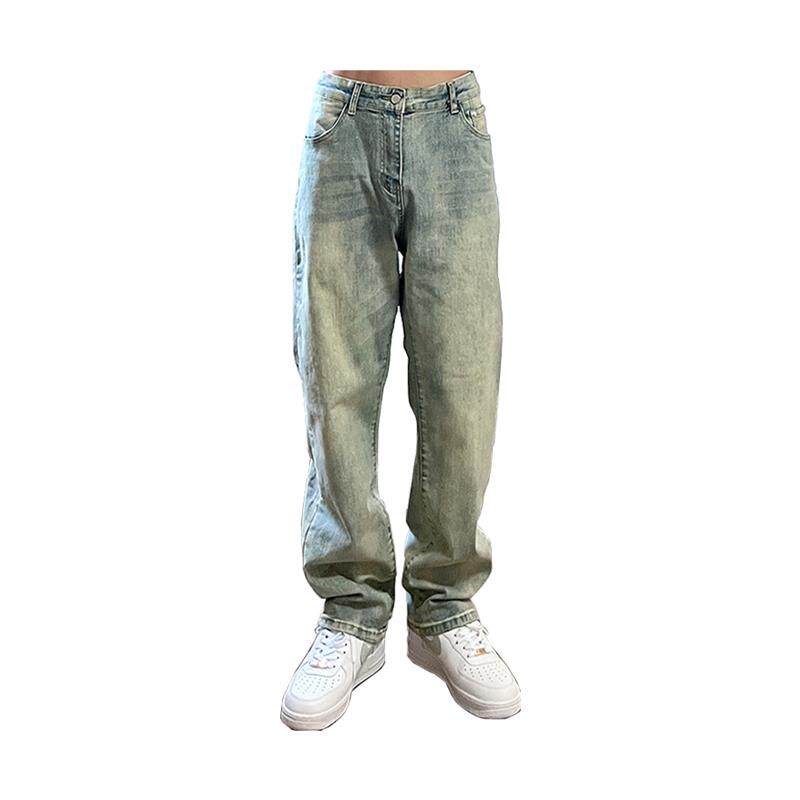 美式街头复古黄泥染水洗做旧牛仔裤休闲直筒坠感高街嘻哈男ins潮