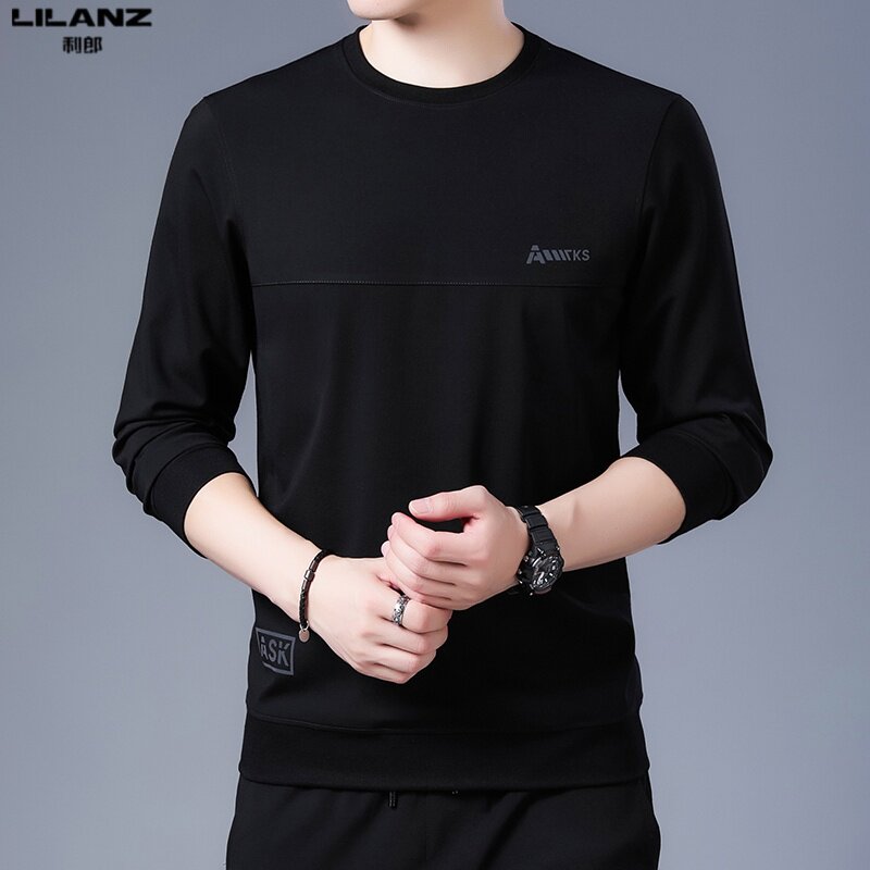 2026利郎男装长袖T恤春季新款休闲圆领卫衣男士纯色休闲打底衫潮