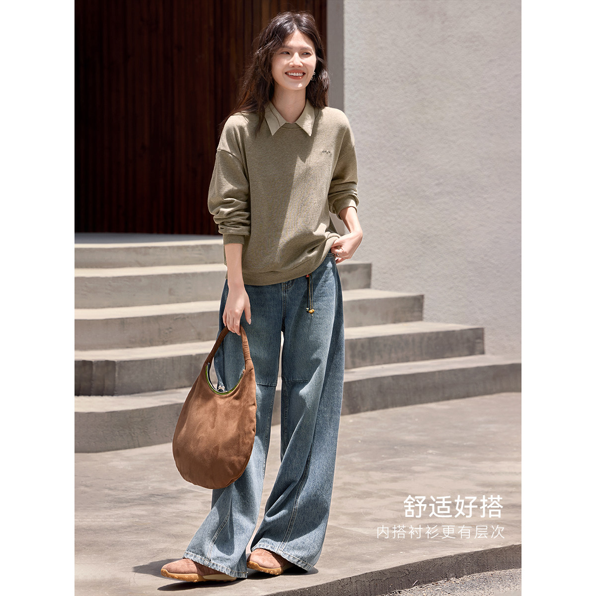 XWI欣未后背设计感花纱刺绣卫衣女2026春季新款都市通勤休闲上衣