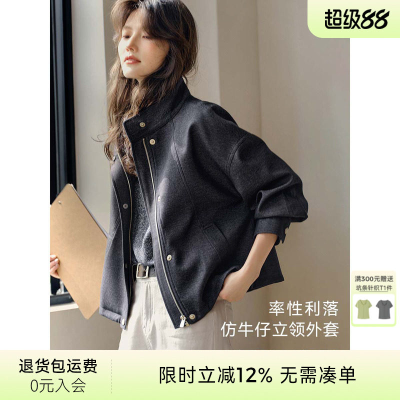 --------------------- XWI欣未复古仿牛仔立领短款外套女秋季新款休闲风超好看夹克上衣 【原售价】449元 【现售价】233元 【推荐理由】
