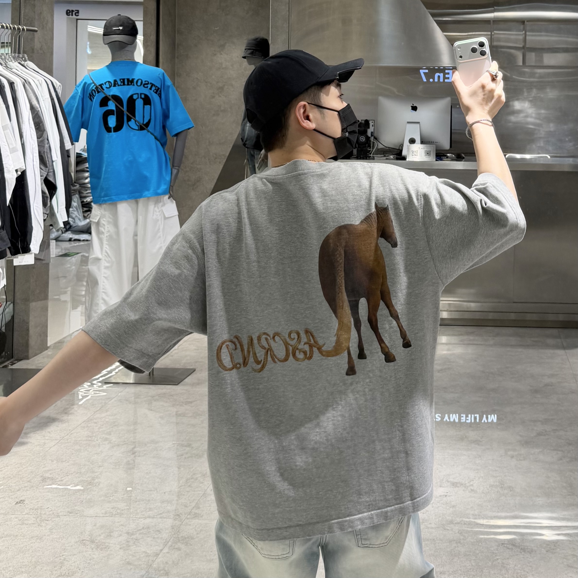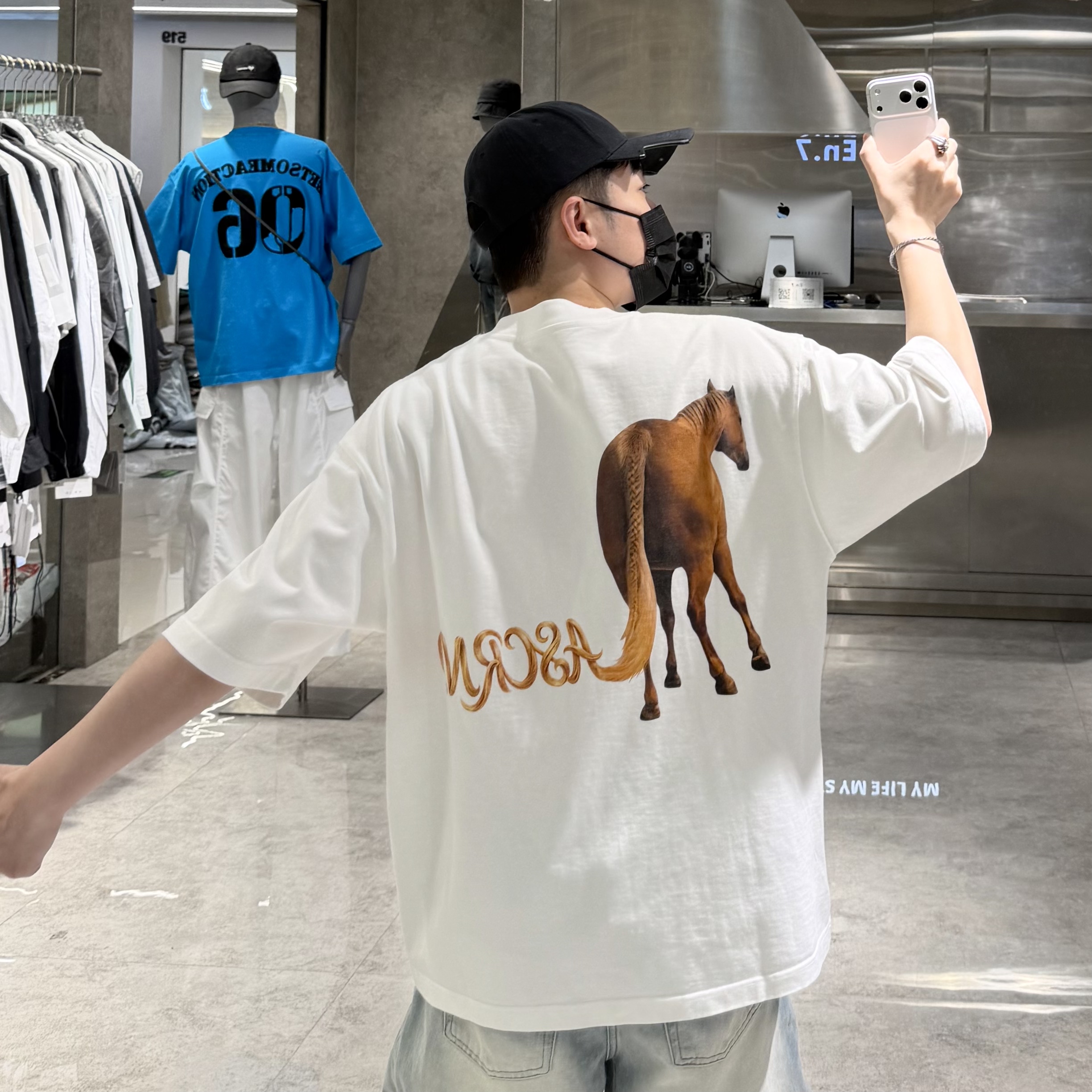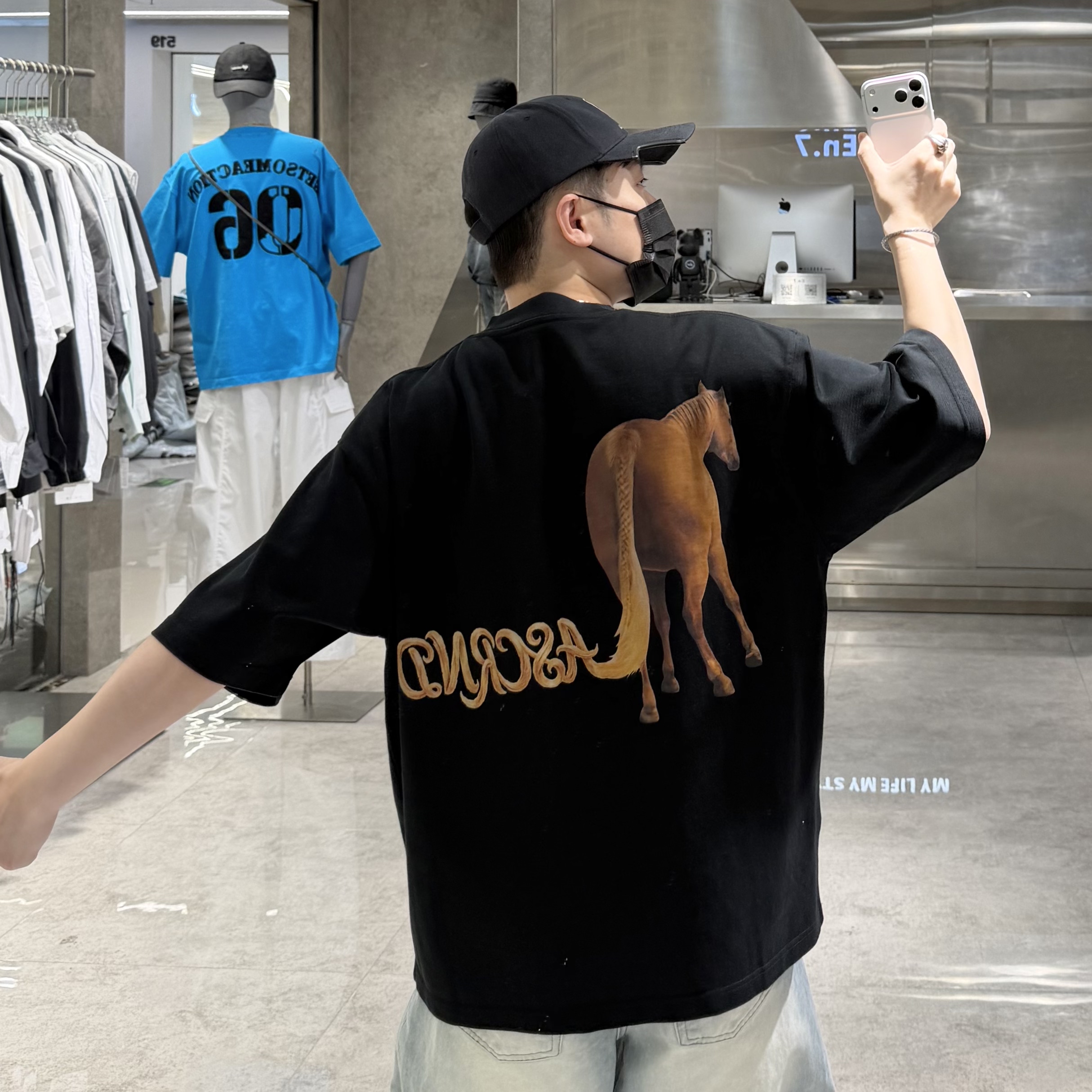--------------------- 潮牌夏季重磅350g短袖T恤男国潮字母卡通马印花宽松青年帅气半袖t 【原售价】259元 【现售价】227元 【推荐理由】