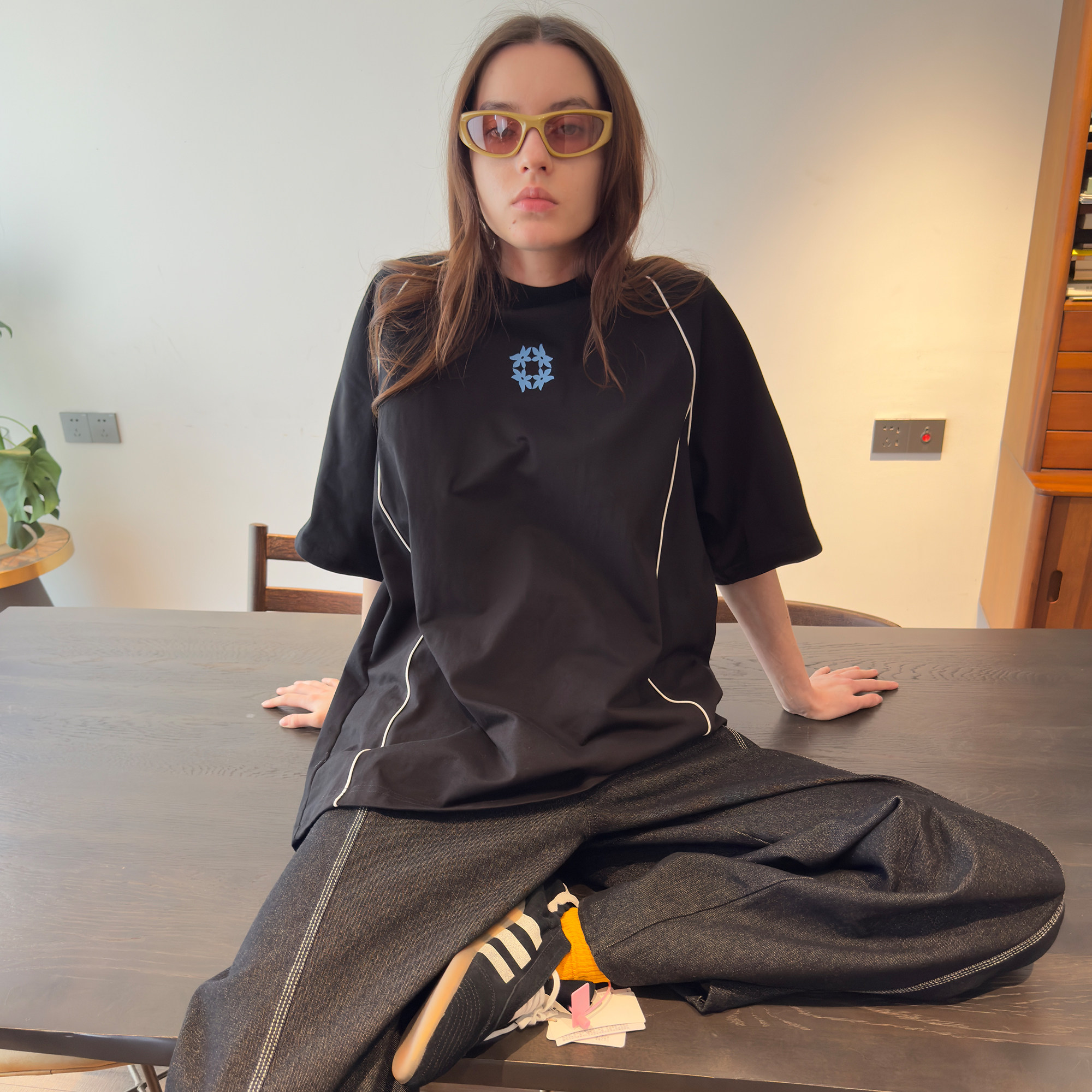MIICHOUS米丘寺 运动宣言撞色条凉感冰皮抗菌速干宽松圆领短袖T恤