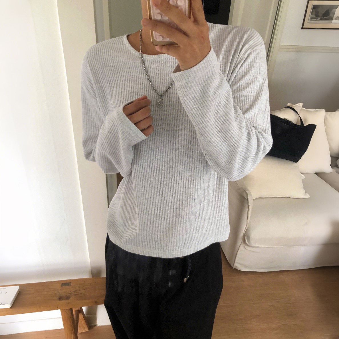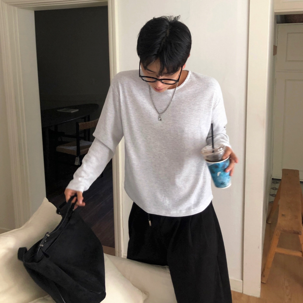 --------------------- MRCYC老钱风圆领华夫格长袖T恤男2026春季新款宽松打底衫韩系穿搭 【原售价】78元 【现售价】68.6元 【推荐理由】