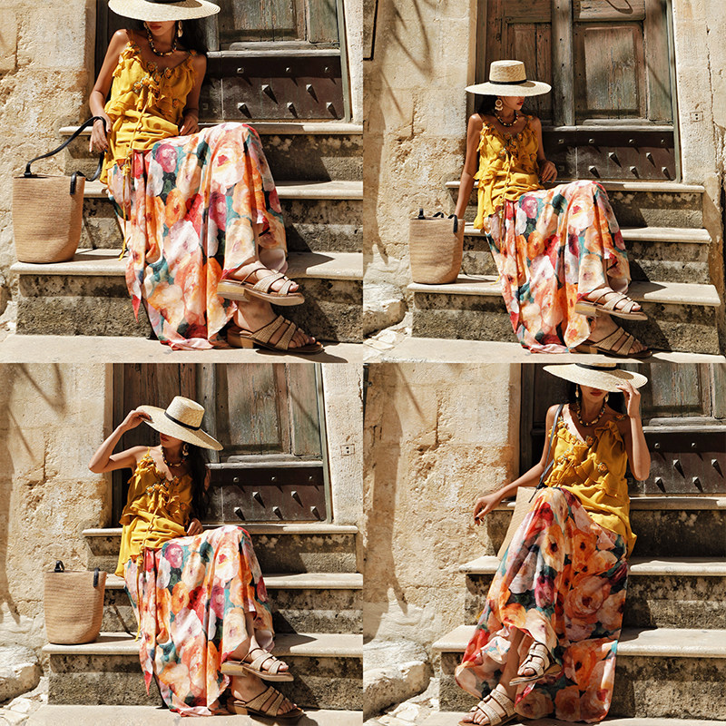 --------------------- 麦叙原创《漫游花镜》法式度假风油画印花两穿半身裙/挂脖连衣裙 【原售价】248元 【现售价】248元 【推荐理由】