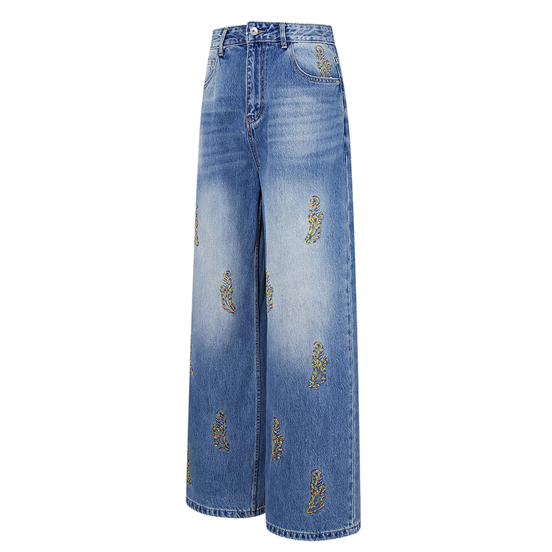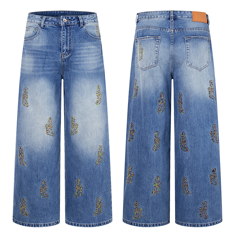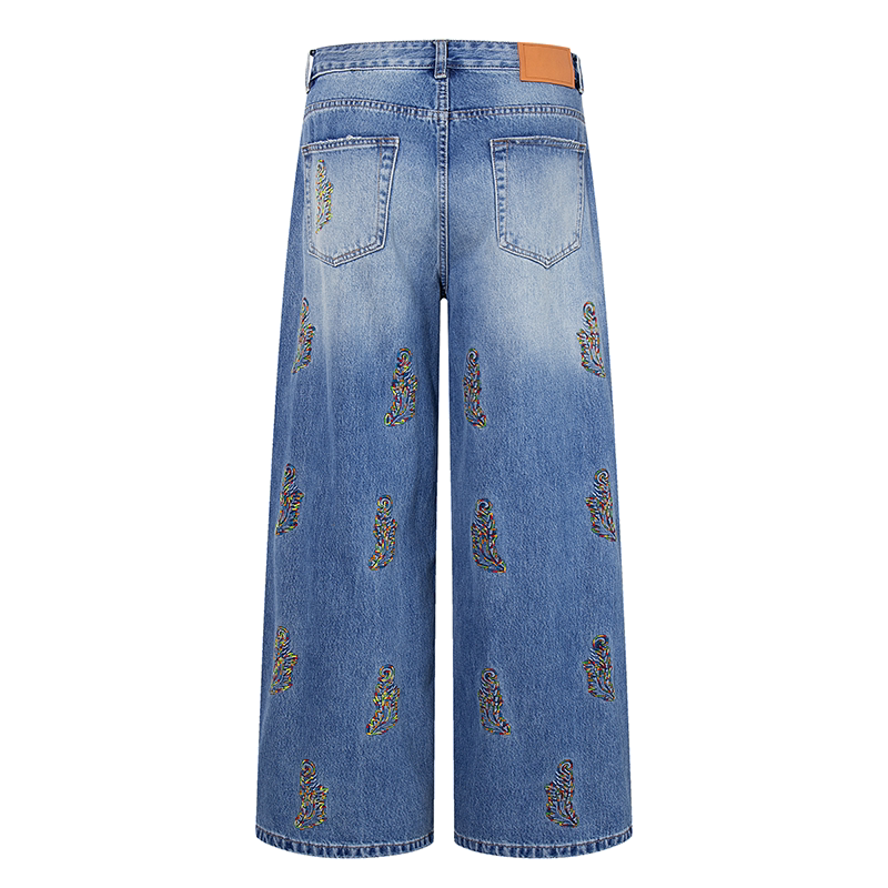 --------------------- 国潮巴黎风美式街头风植物刺绣阔腿纯棉牛仔裤男女宽松高端长裤潮 【原售价】499元 【现售价】499元 【推荐理由】