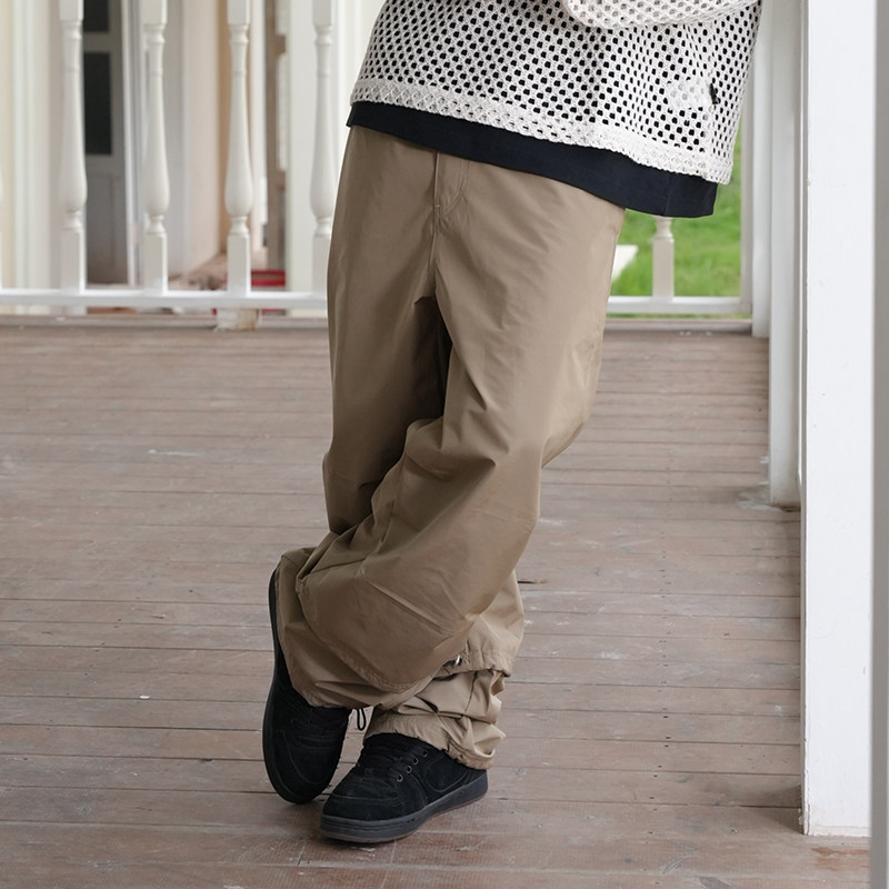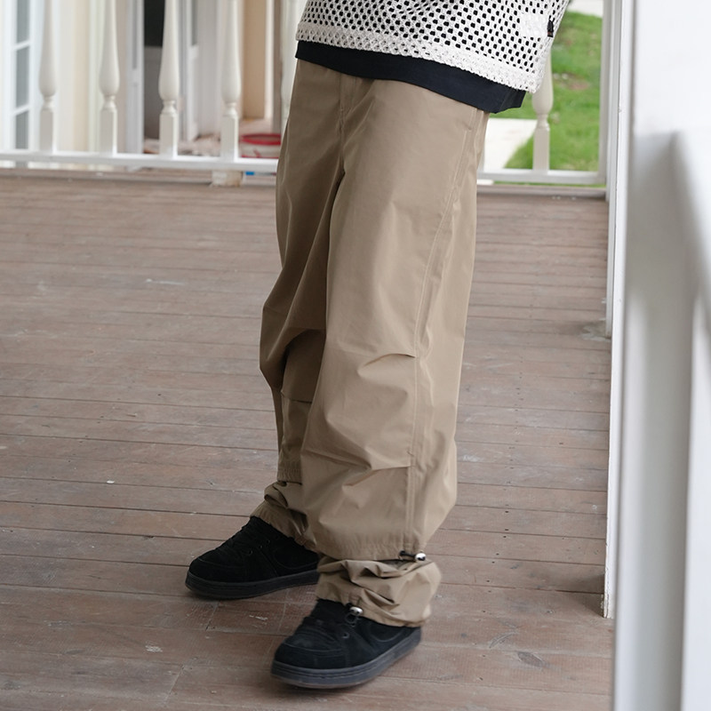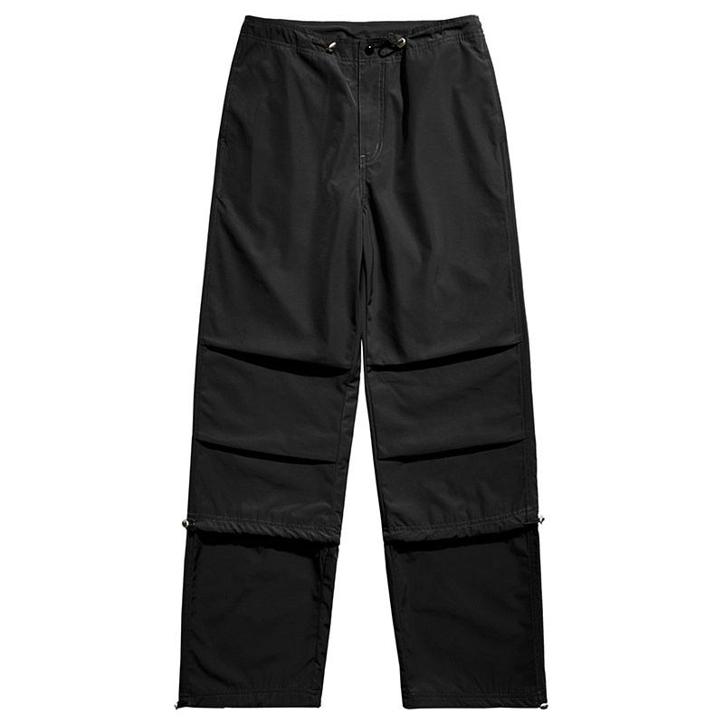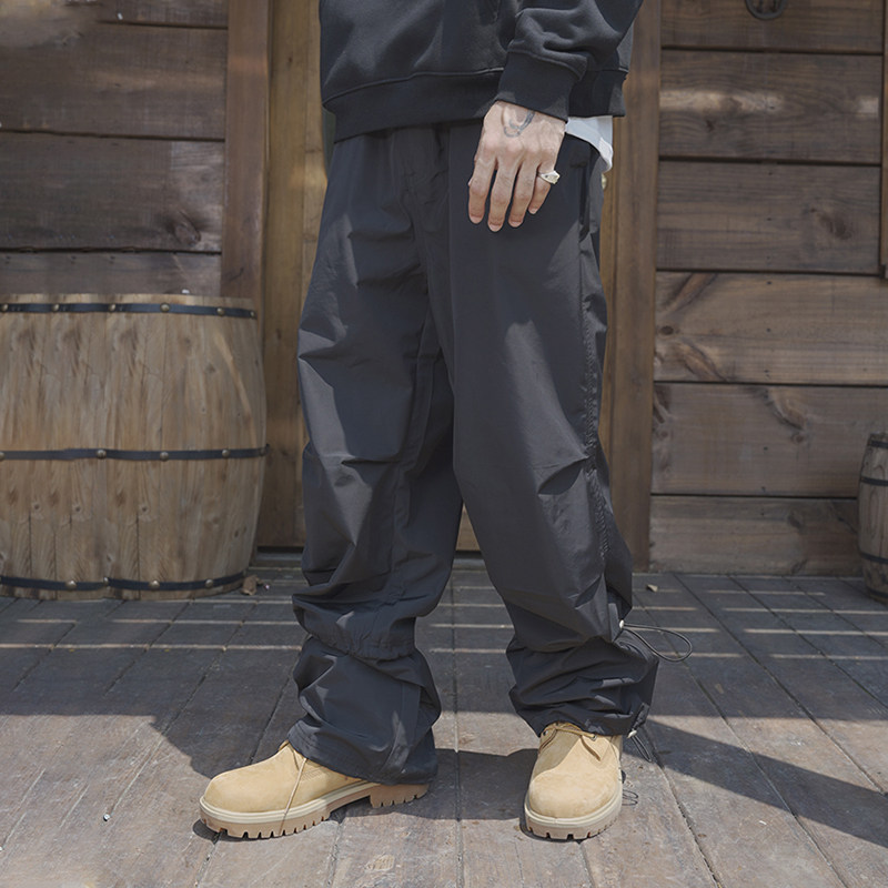 Remedy春秋款国潮褶皱宽松直筒休闲长裤美式潮牌尼龙伞兵裤男女