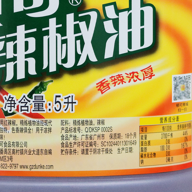 --------------------- 顿可辣椒油5L桶装红油商用烧烤调料卤菜凉拌辣子香辣味小海鲜捞汁 【原售价】22元 【现售价】22元 【推荐理由】