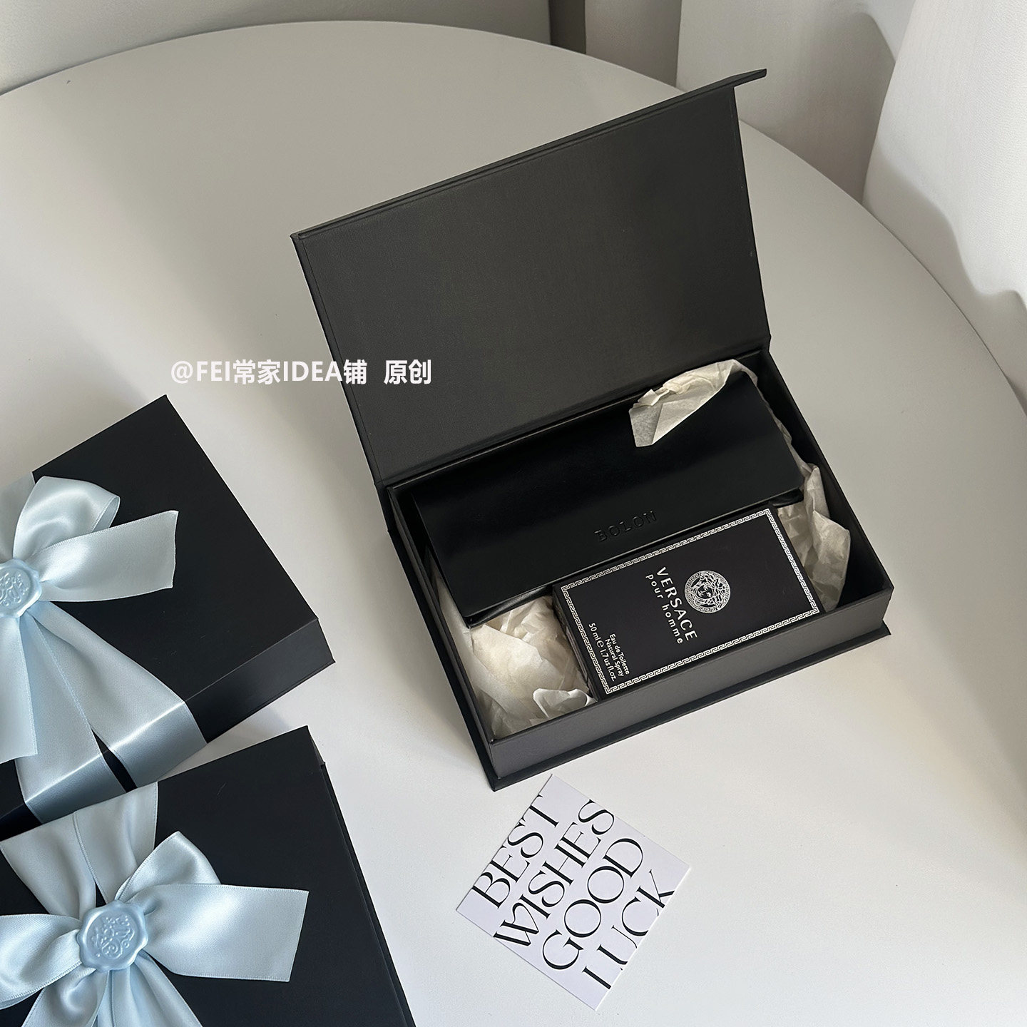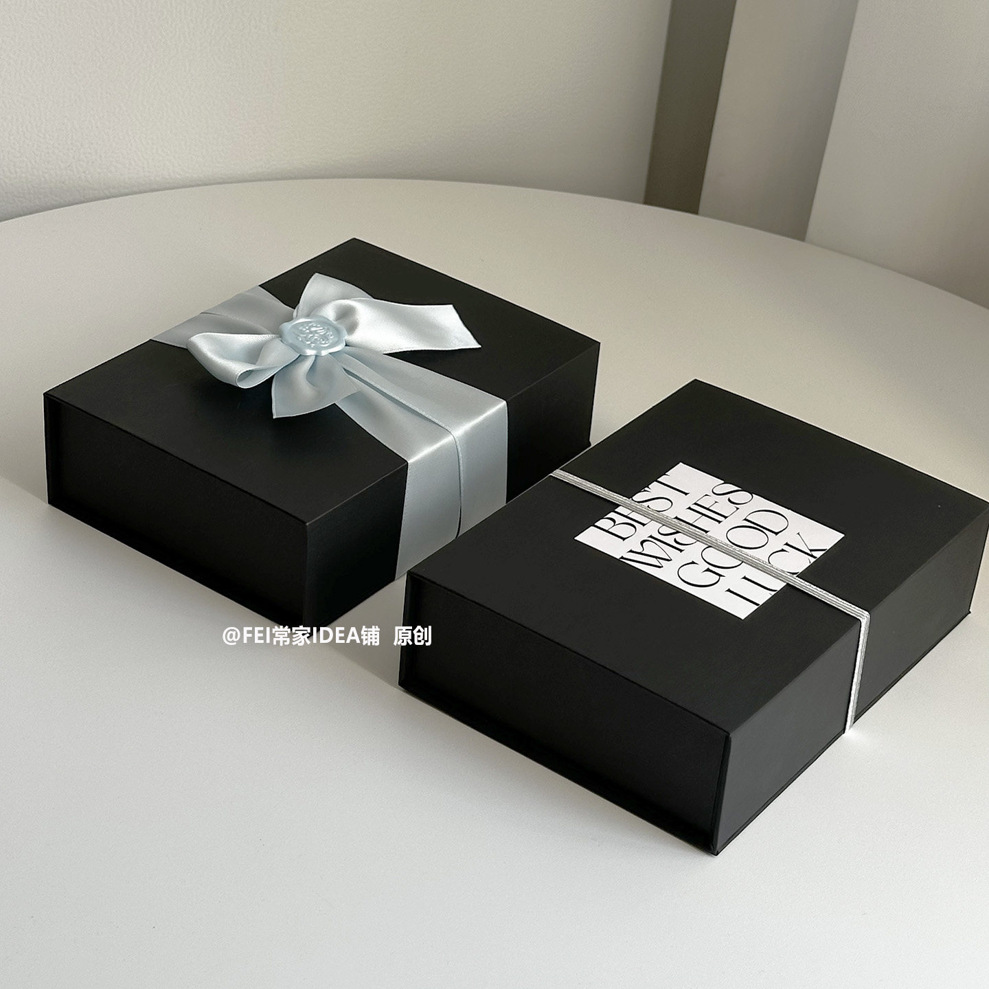 淘宝情人节黑色磁吸绸缎礼品盒高档轻奢送男生墨镜巧克力纸质礼物盒
