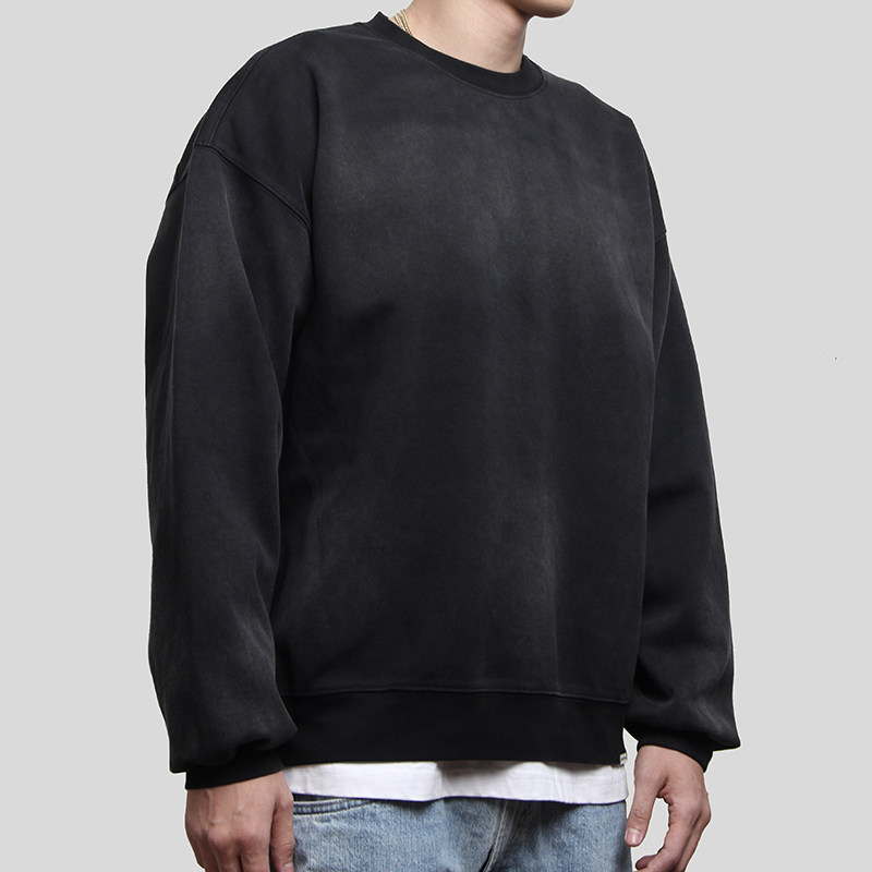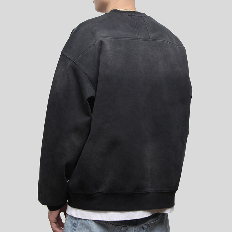 淘宝Commas 原创国潮喷马骝美式高街复古做旧基础圆领卫衣男套头上衣