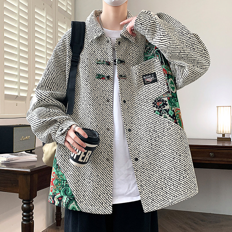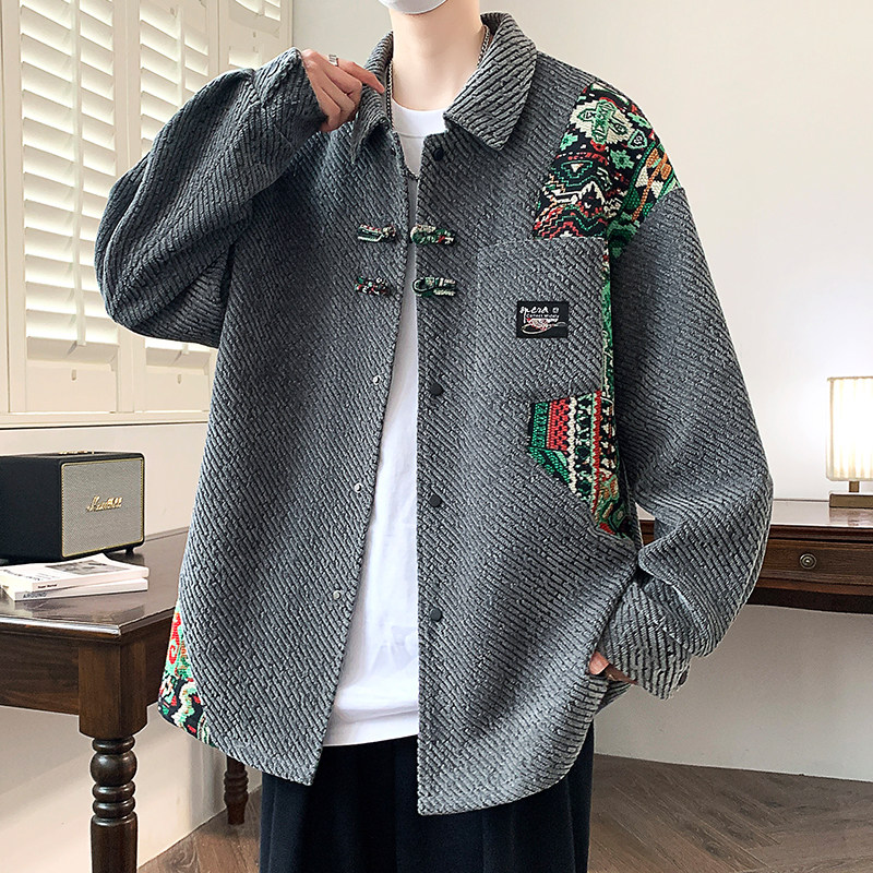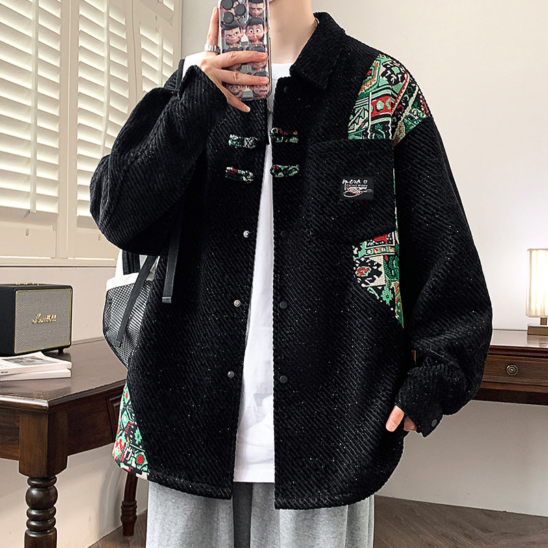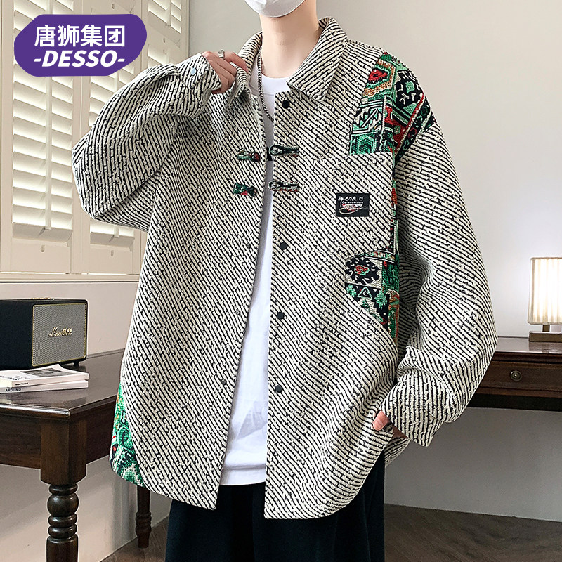 唐狮集团DESSO新中式春秋长袖衬衫男雪尼尔高级帅气学生衬衣外套