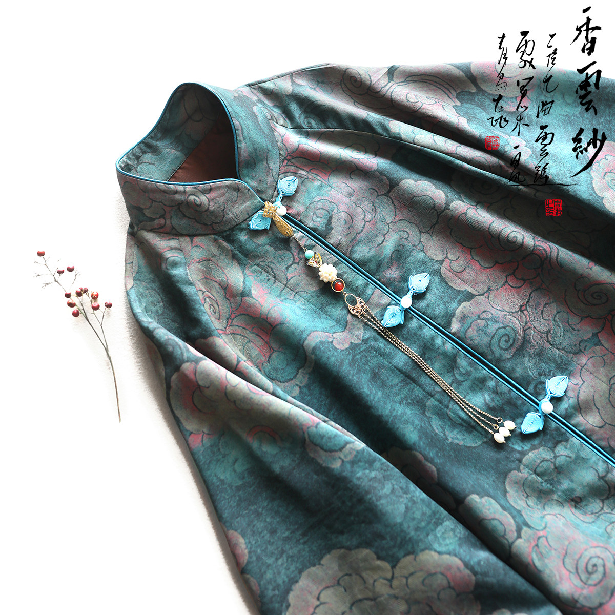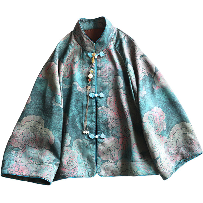 --------------------- 云澍原创 花罗香云纱新中式改良唐装短外套女桑蚕丝印花国潮上衣 【原售价】1243元 【现售价】780元 【推荐理由】