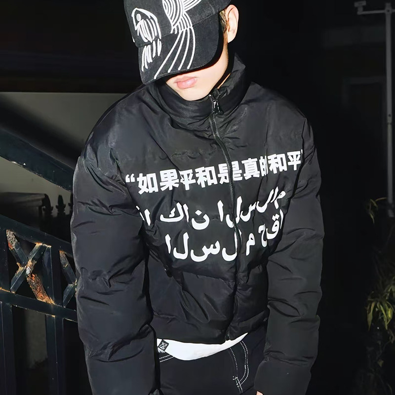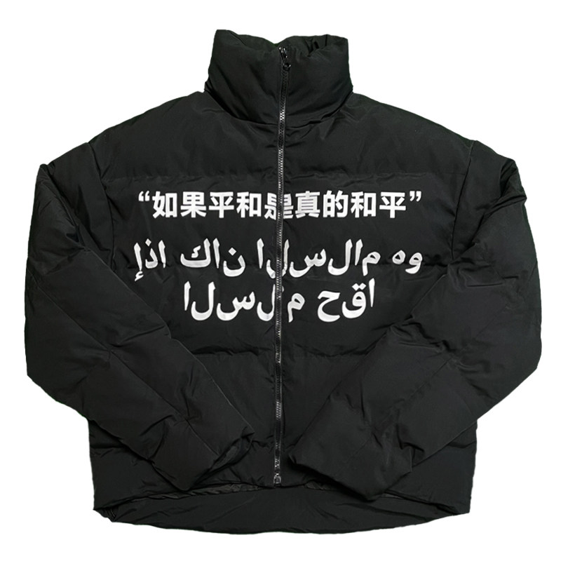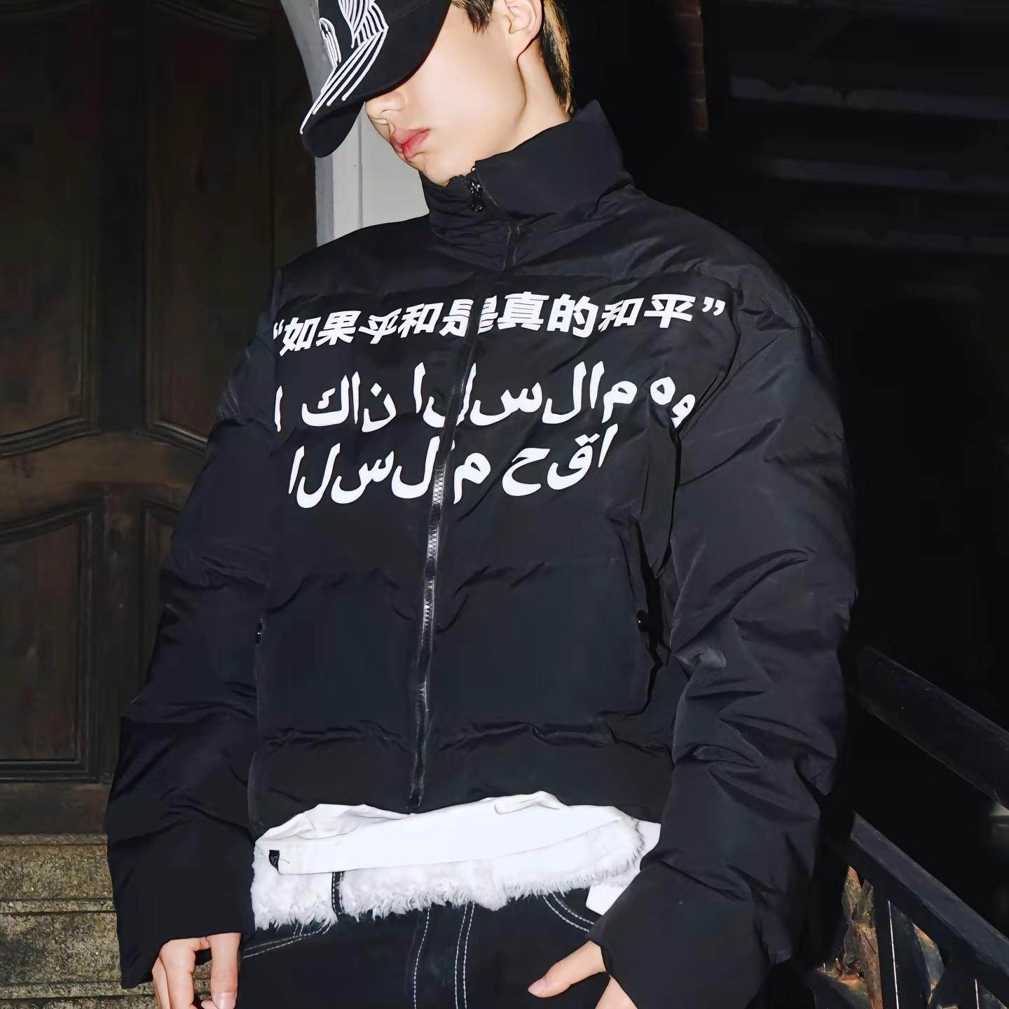 Vinkid(云梯)和平鸽标语基础棉服 百搭小众秋冬保暖国潮休闲外套
