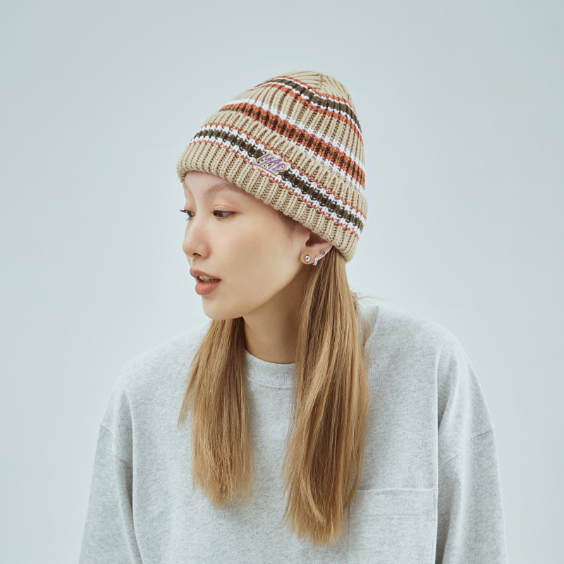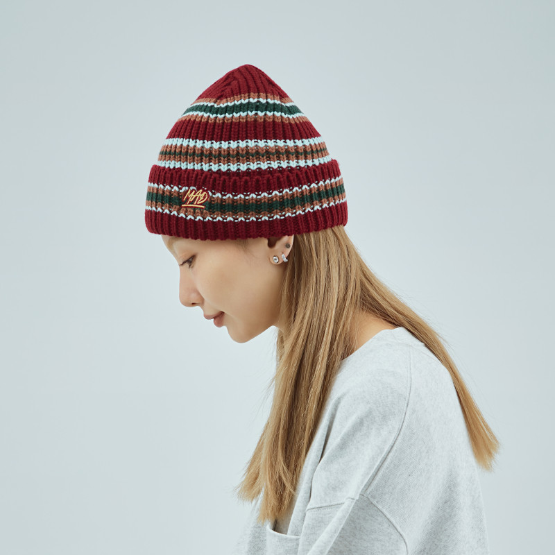 theMADHATcher「mini logo」条纹针织帽复古撞色毛线显瘦保暖护耳