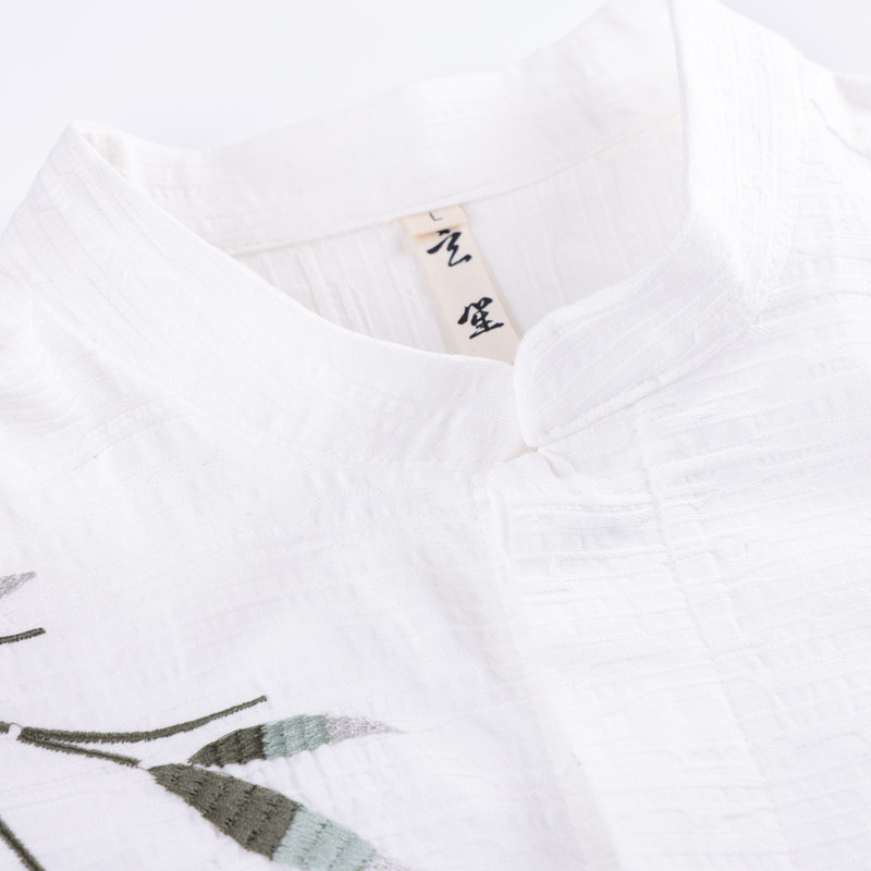 --------------------- 春季唐装衬衫男中国风棉麻新中式改良复古国潮立领竹叶刺绣衬衣男 【原售价】318元 【现售价】191元 【推荐理由】