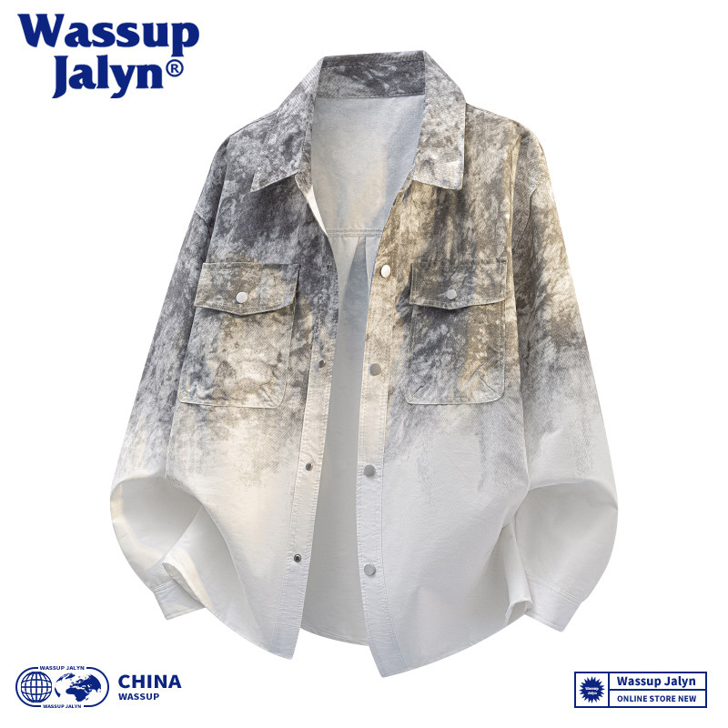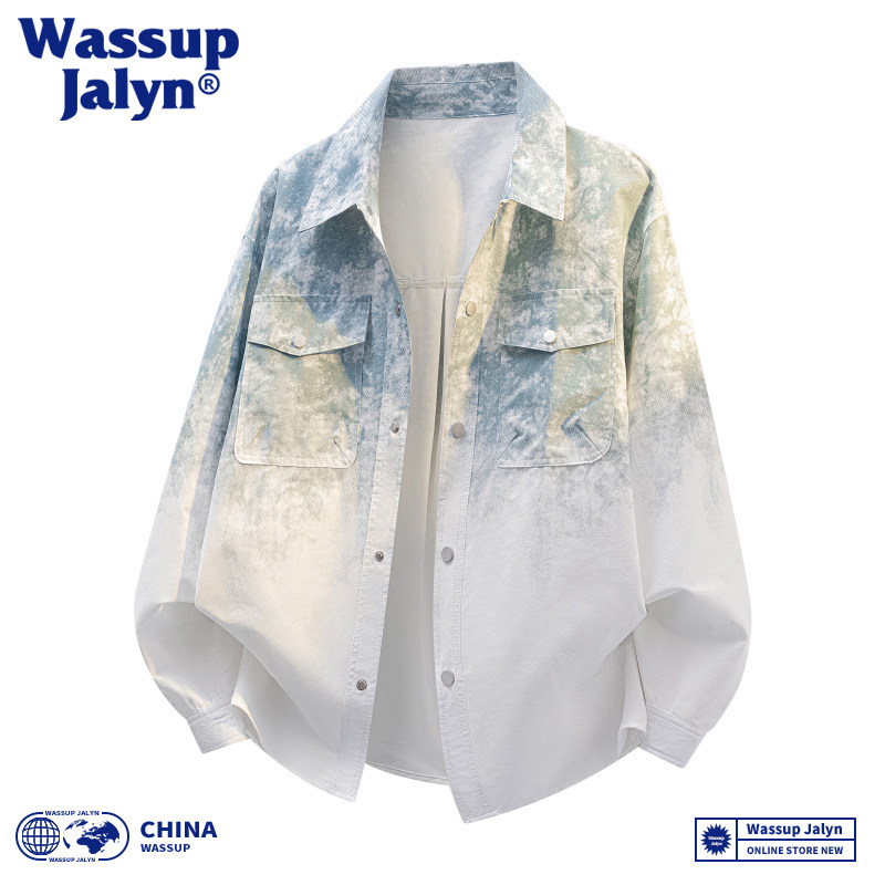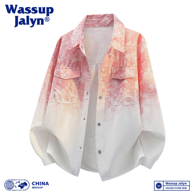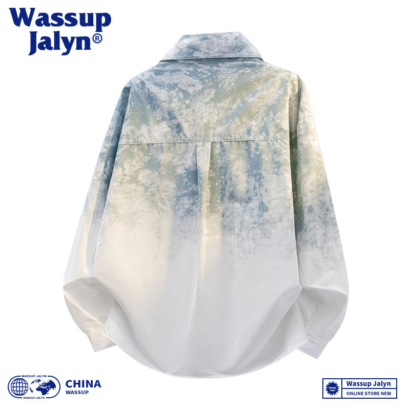 WASSUP JALYN衬衫男长袖春季新款渐变色潮牌休闲翻领衬衣宽松外套