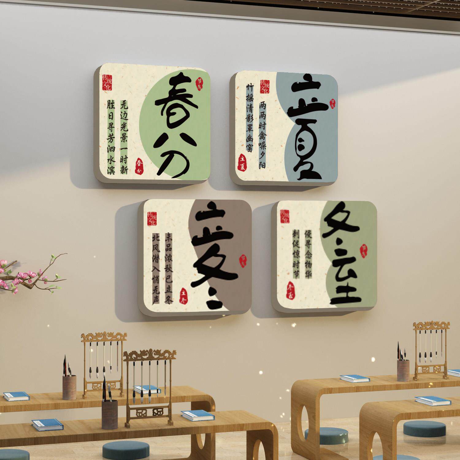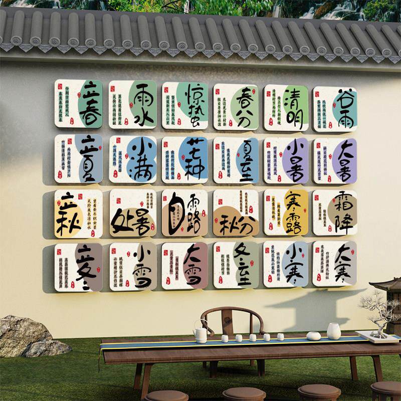 茶室背景墙装饰二十四节气文化墙新中式古风茶叶店氛围布置贴画24