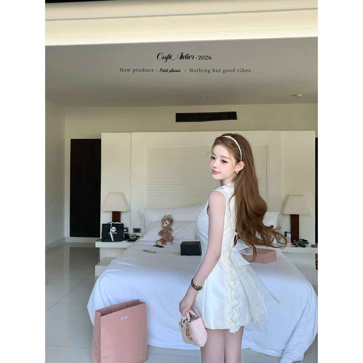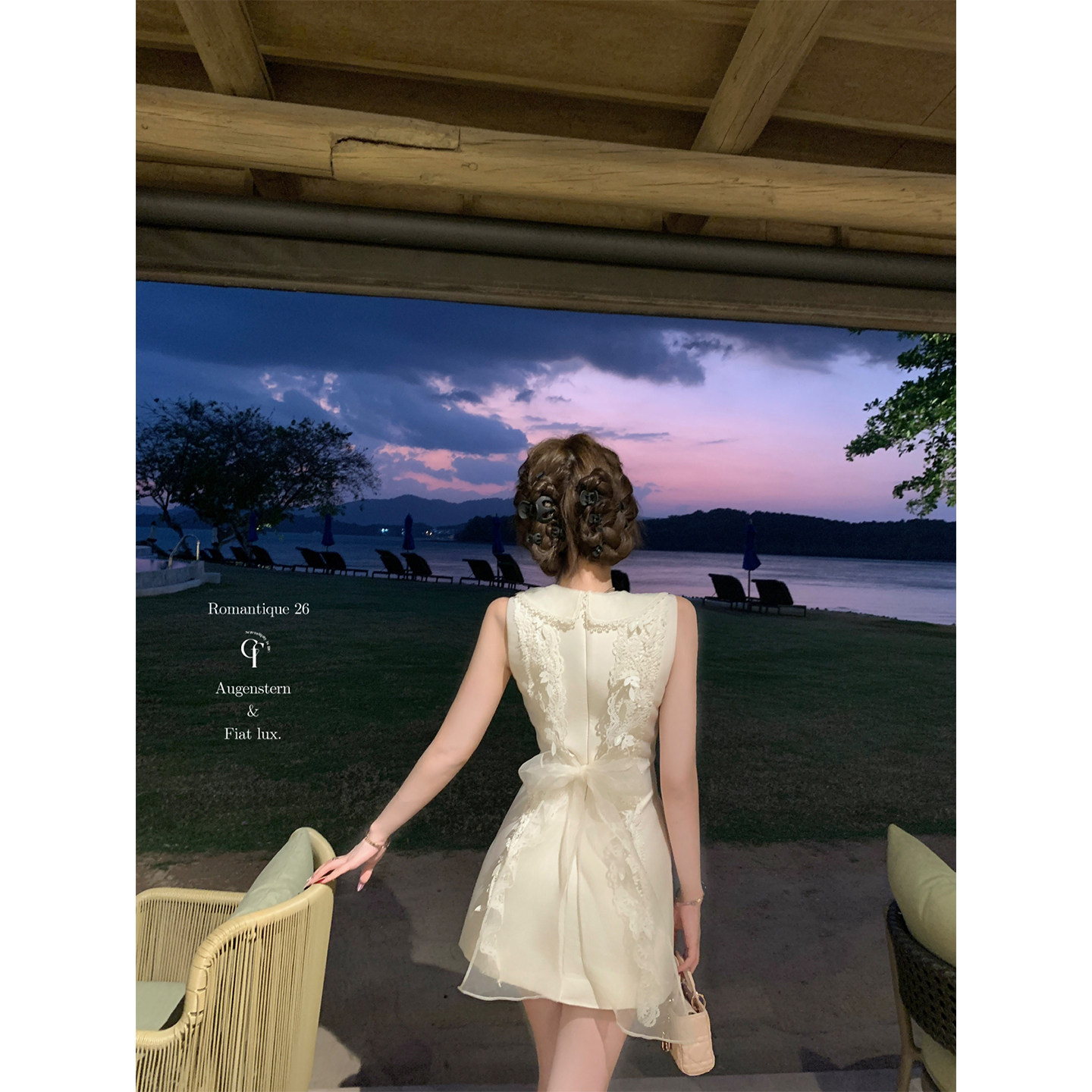 --------------------- 迟伞伞26/ss 初夏耳语 jory*后背系纱白色无袖背心裙气质收腰短裙 【原售价】408元 【现售价】329元 【推荐理由】