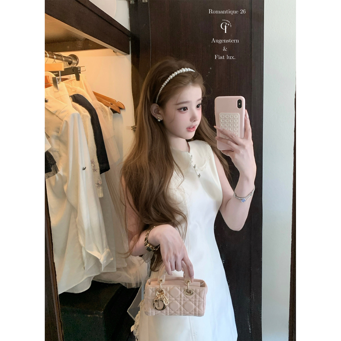 迟伞伞26/ss 初夏耳语 jory*后背系纱白色无袖背心裙气质收腰短裙