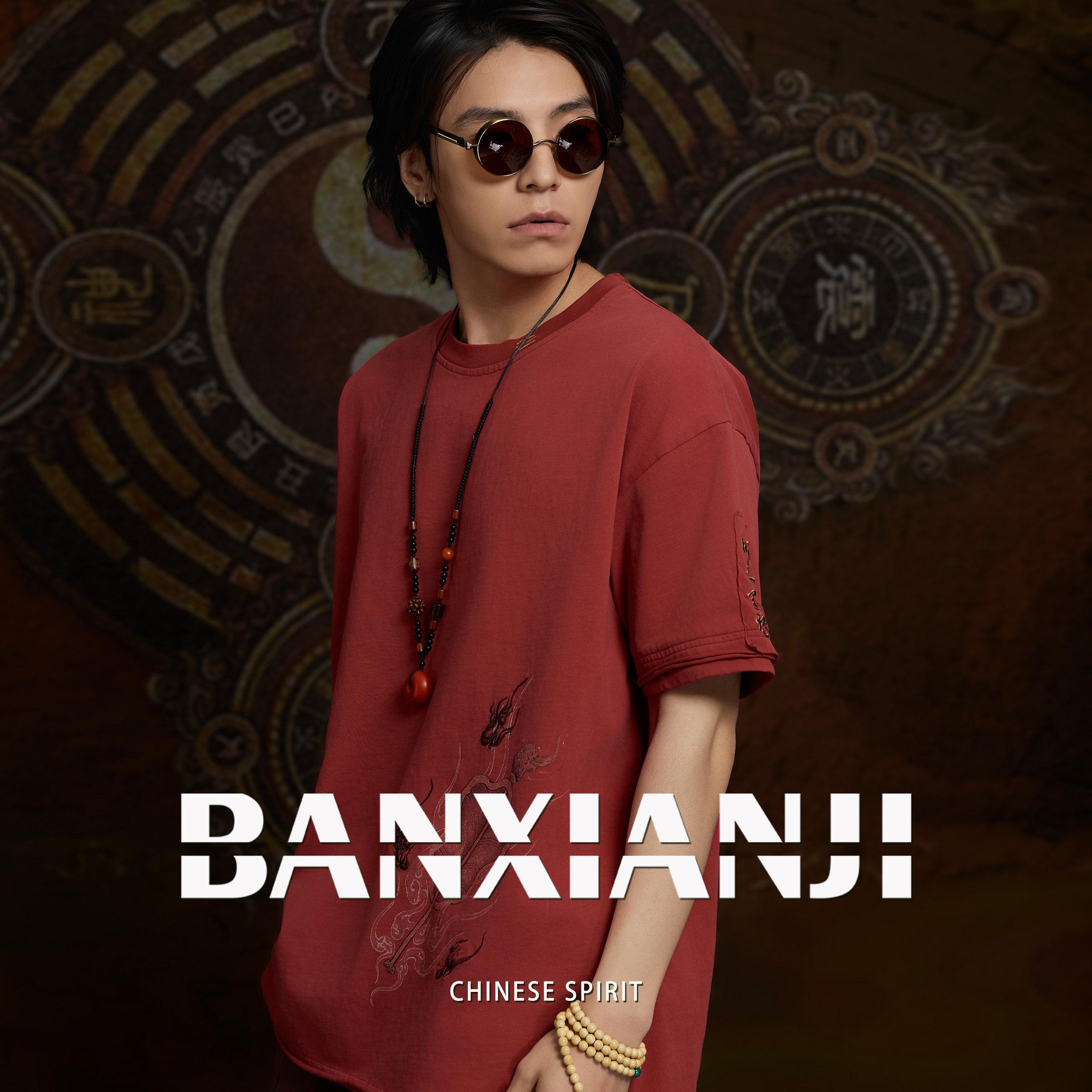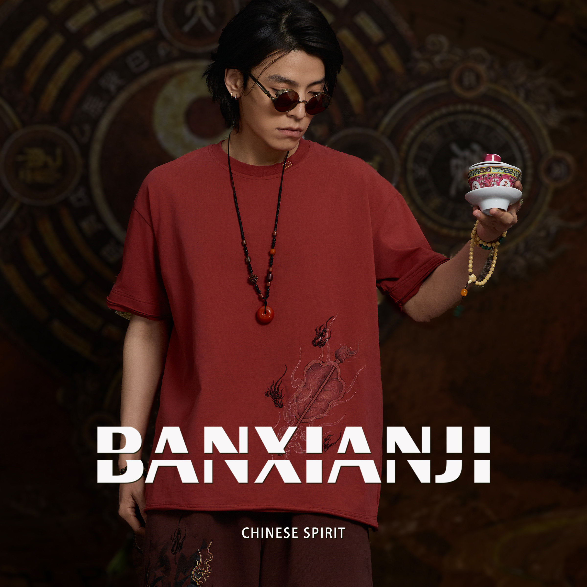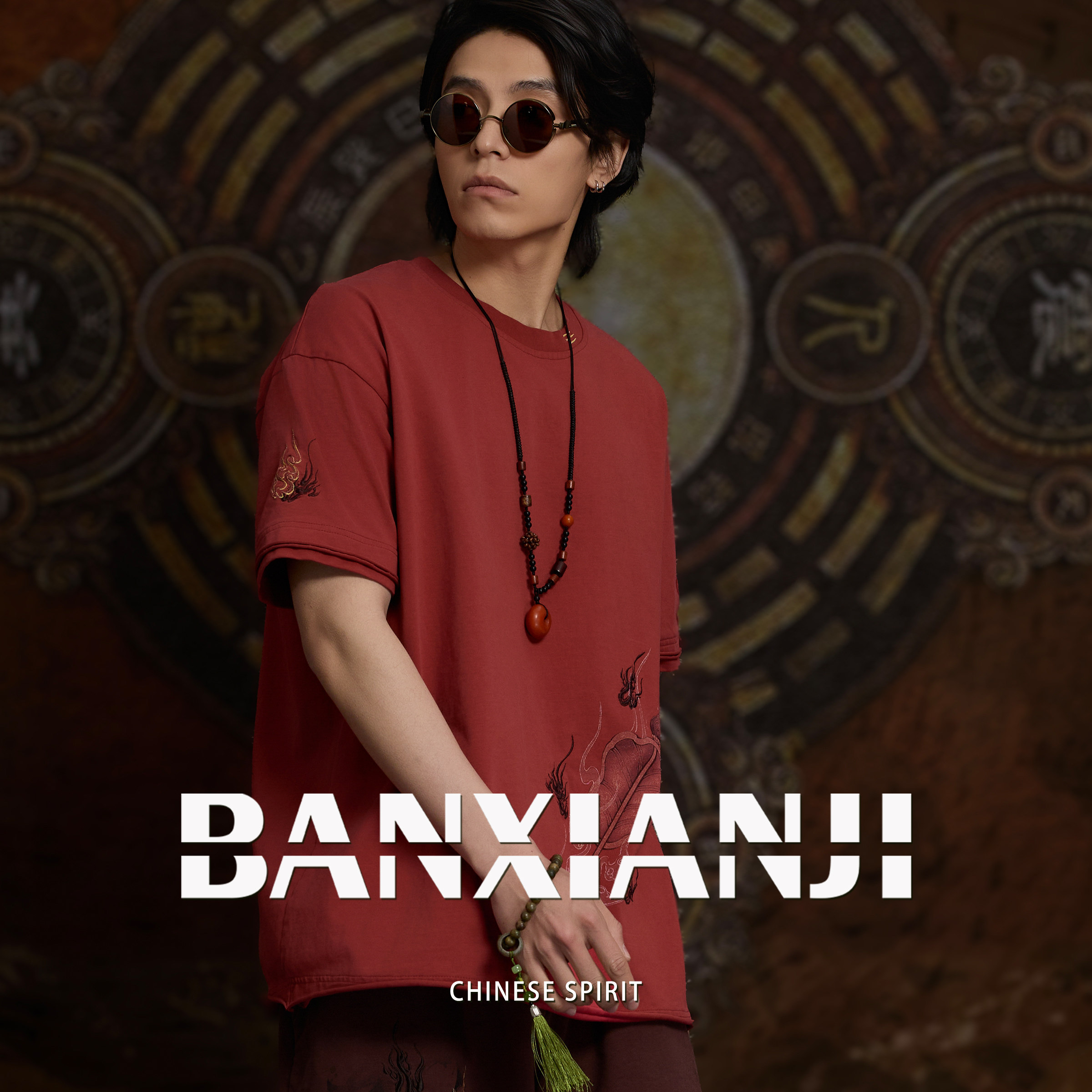 --------------------- 半闲集<离火>夏季复古印花t恤男装国潮刺绣短袖中国风休闲半袖 【原售价】272.5元 【现售价】191元 【推荐理由】