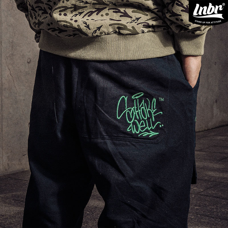 LNBR X ShakeWell联名新品大口袋刺绣嘻哈工装裤男国潮休闲束脚裤