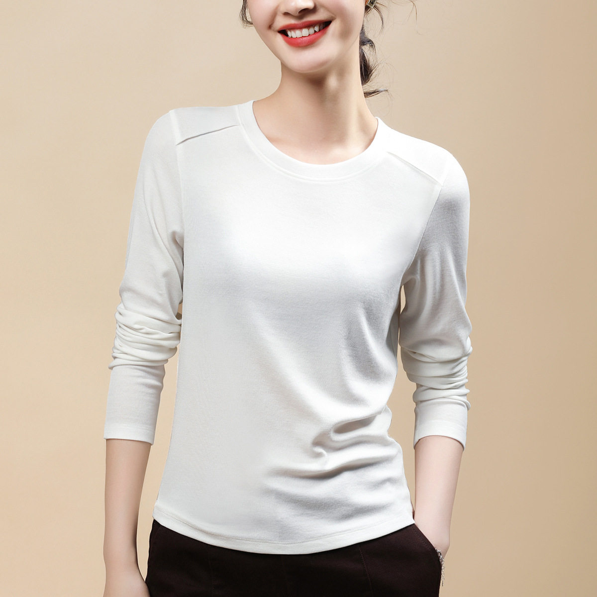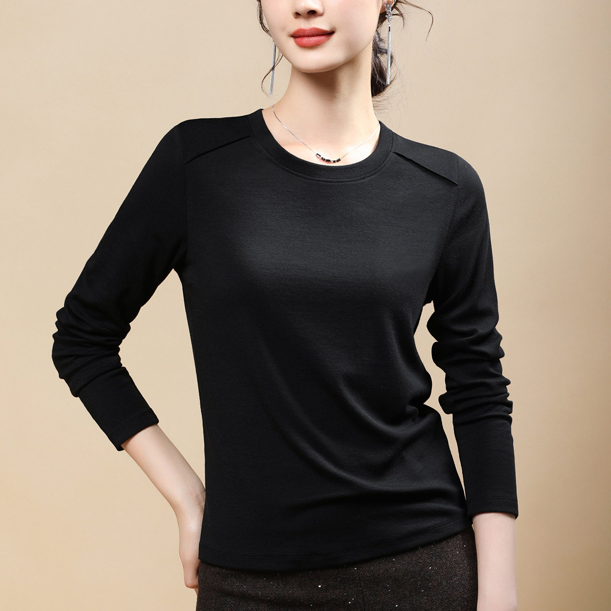 2026春季新款莱赛尔天丝羊毛长袖t恤女显瘦上衣内搭后背线打底衫