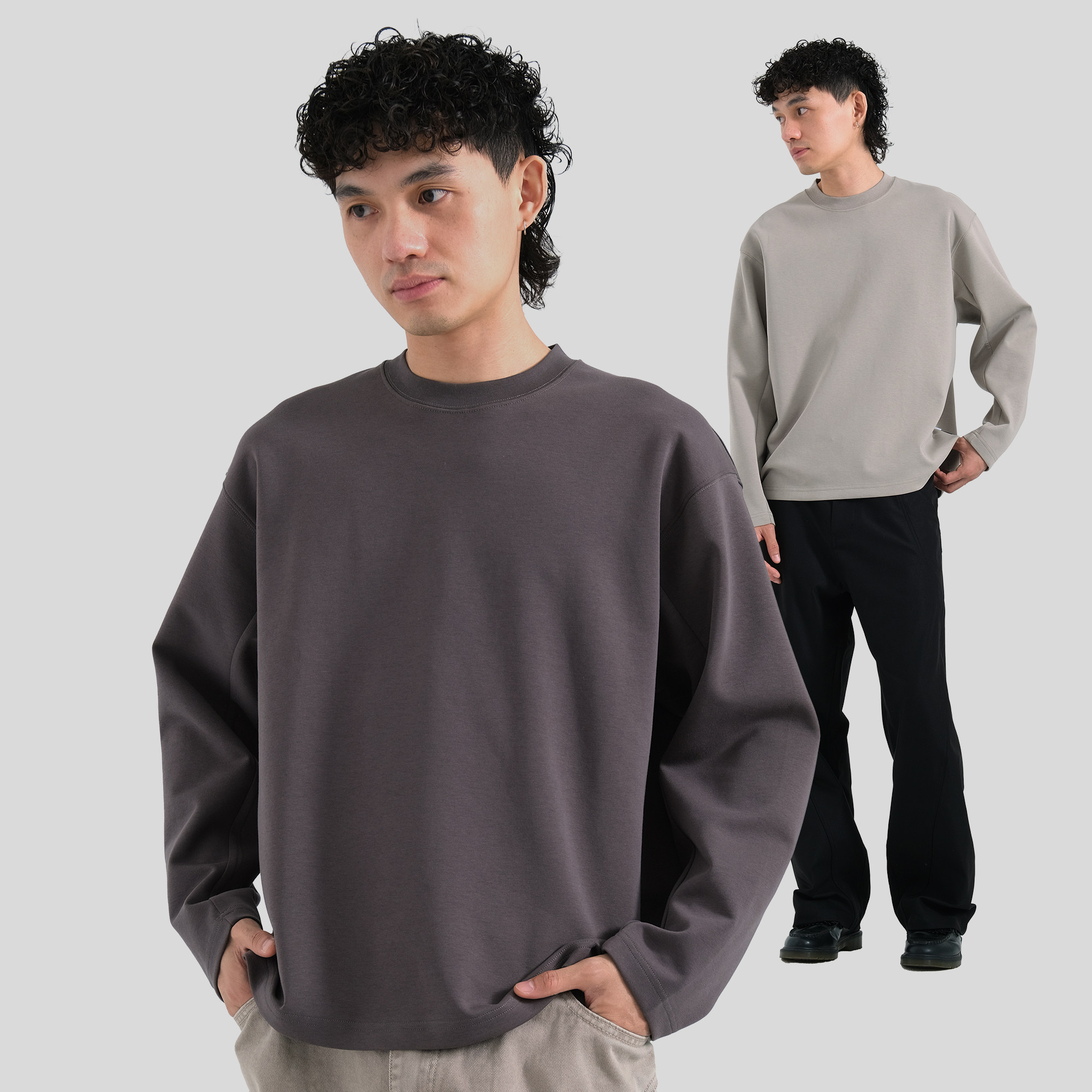 --------------------- TBALLER 2025新款空气层长袖T恤男潮牌日系基础款落肩刺绣弯刀袖 【原售价】119元 【现售价】104元 【推荐理由】