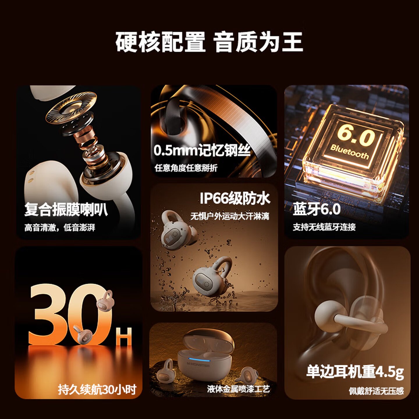 --------------------- 魔声D05蓝牙耳夹式运动耳机长续航跑步运动商务游戏音乐降噪耳机 【原售价】169元 【现售价】144元 【推荐理由】