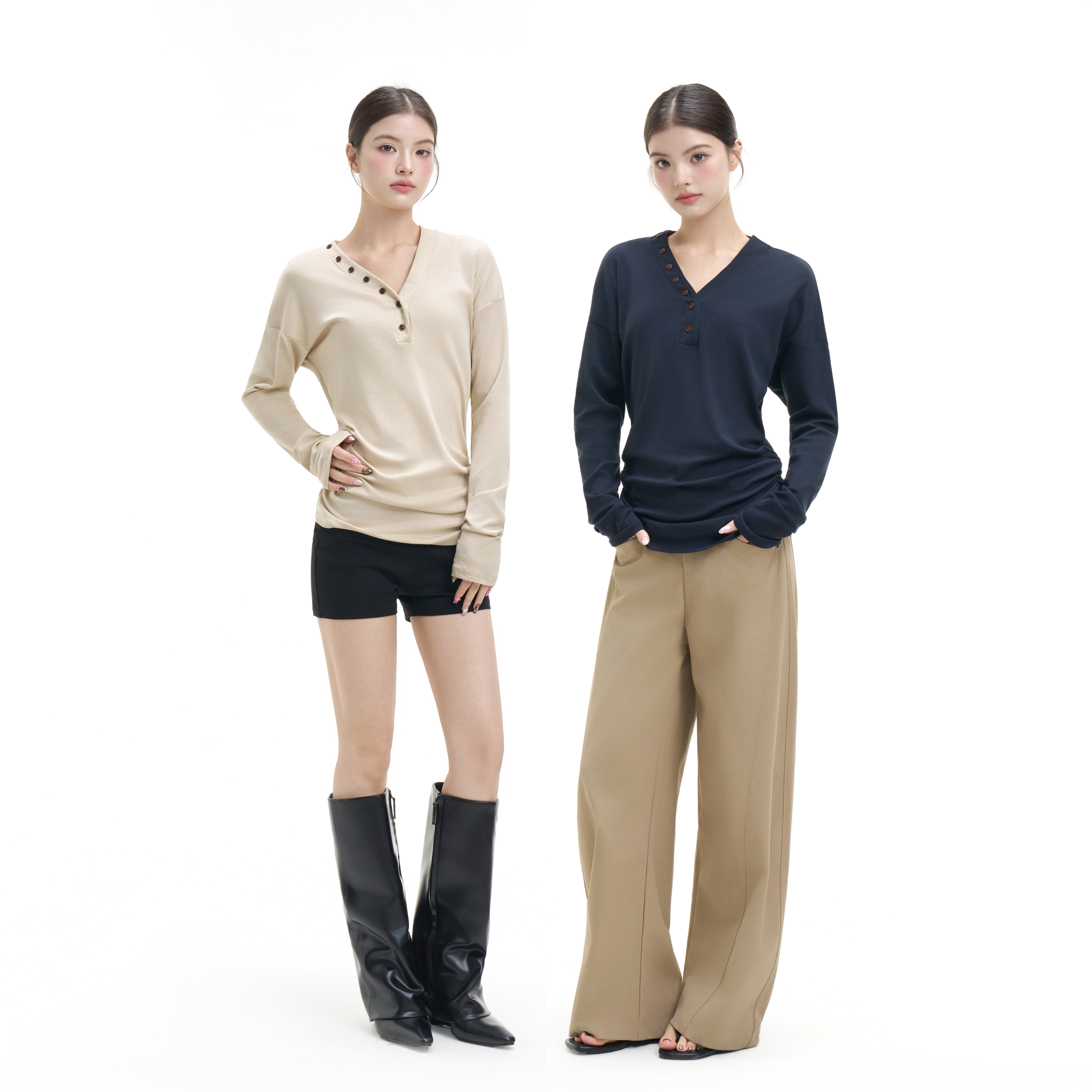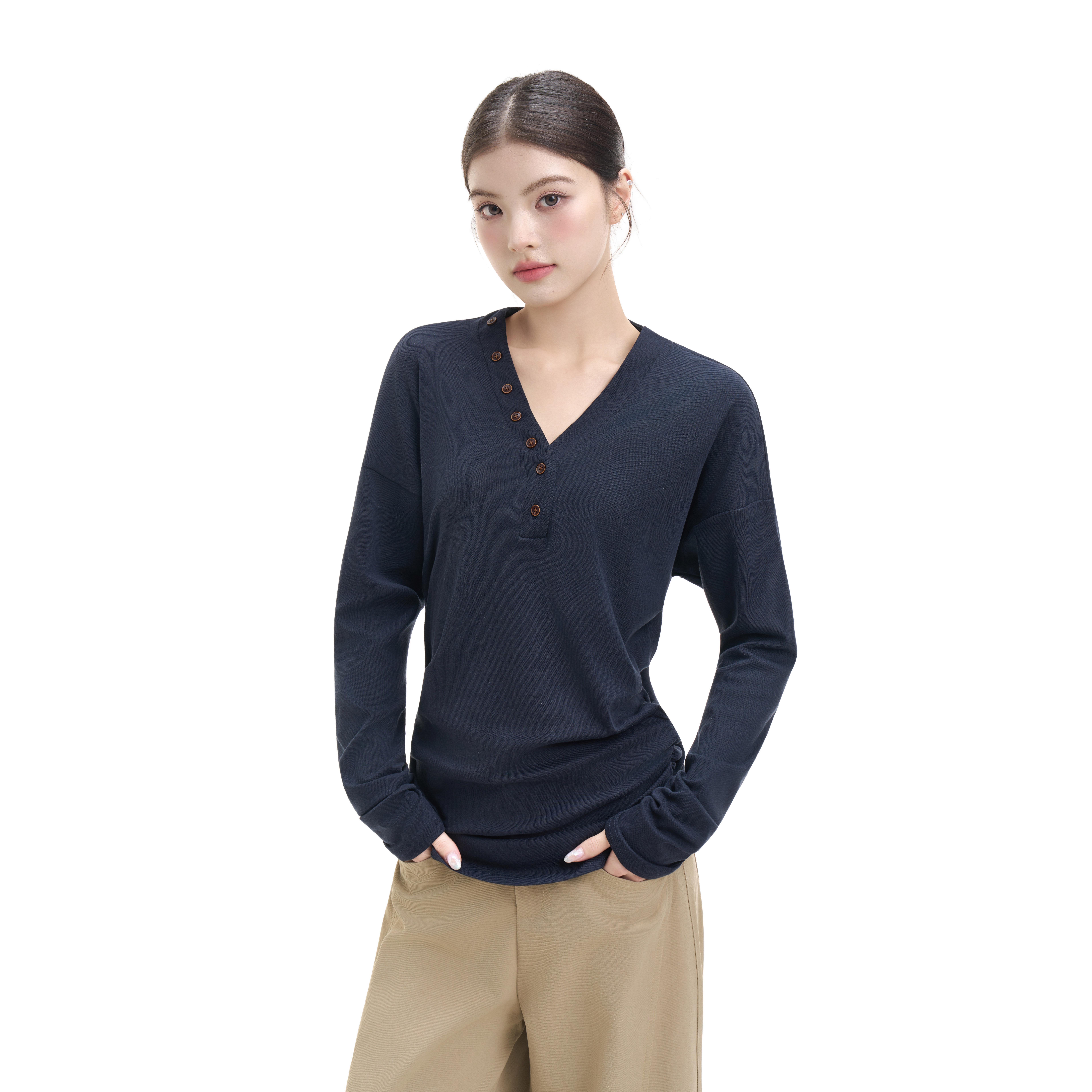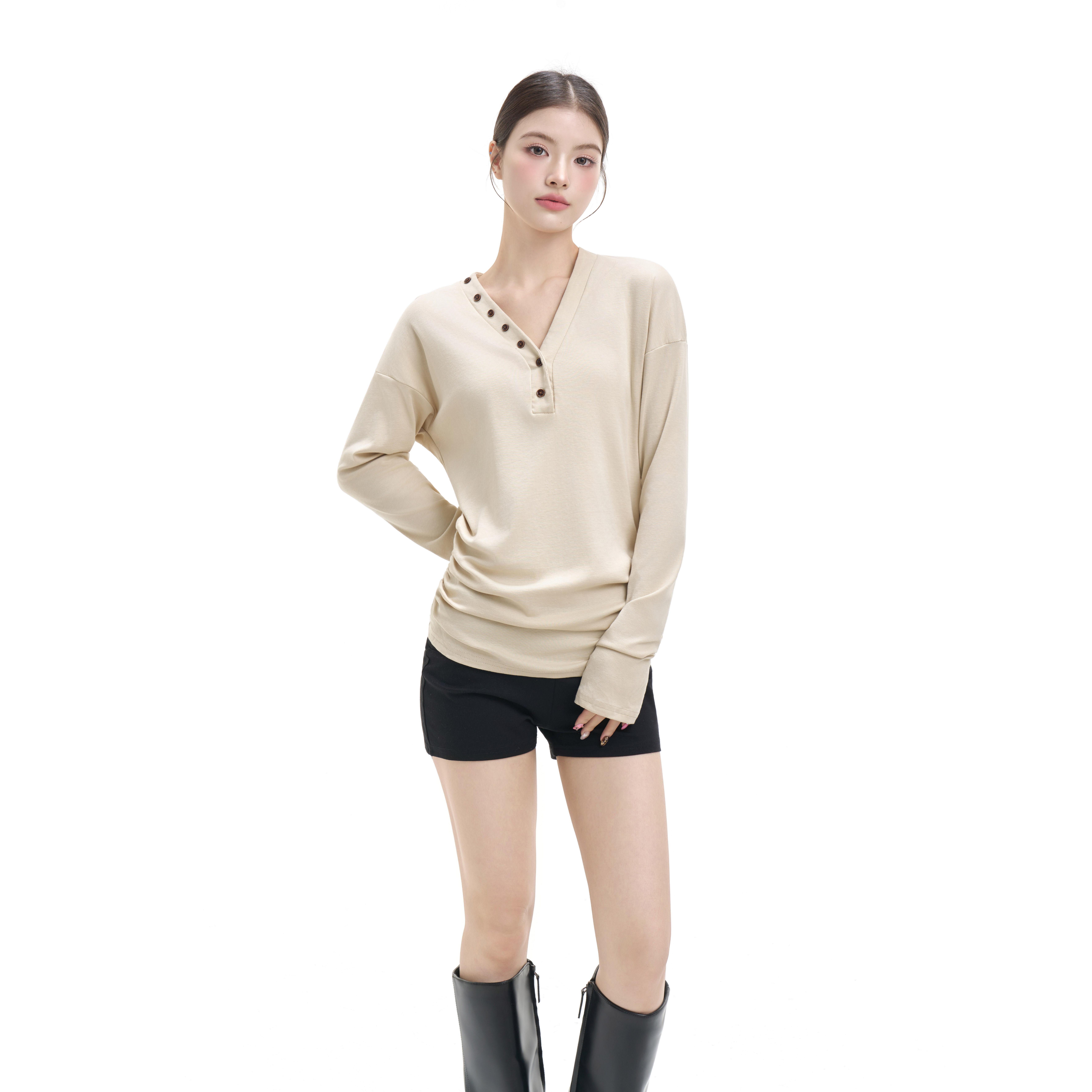 淘宝Sdd Anerog休闲宽松简约单排扣天丝V领百搭长袖薄上衣女