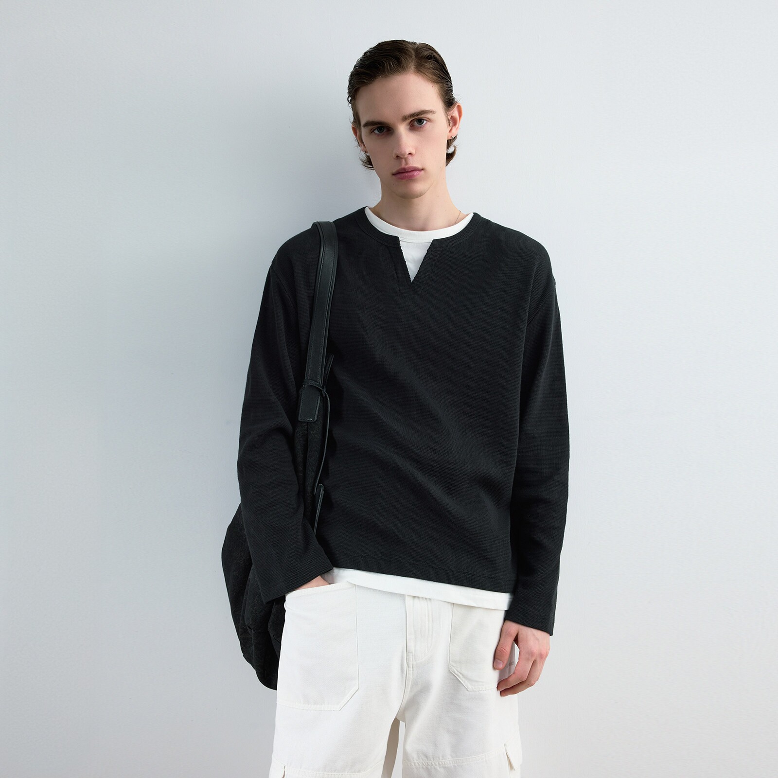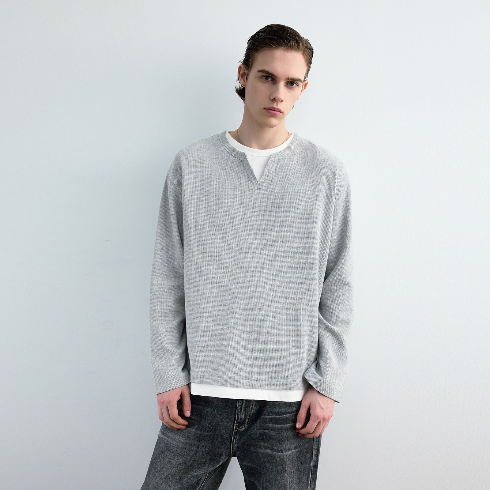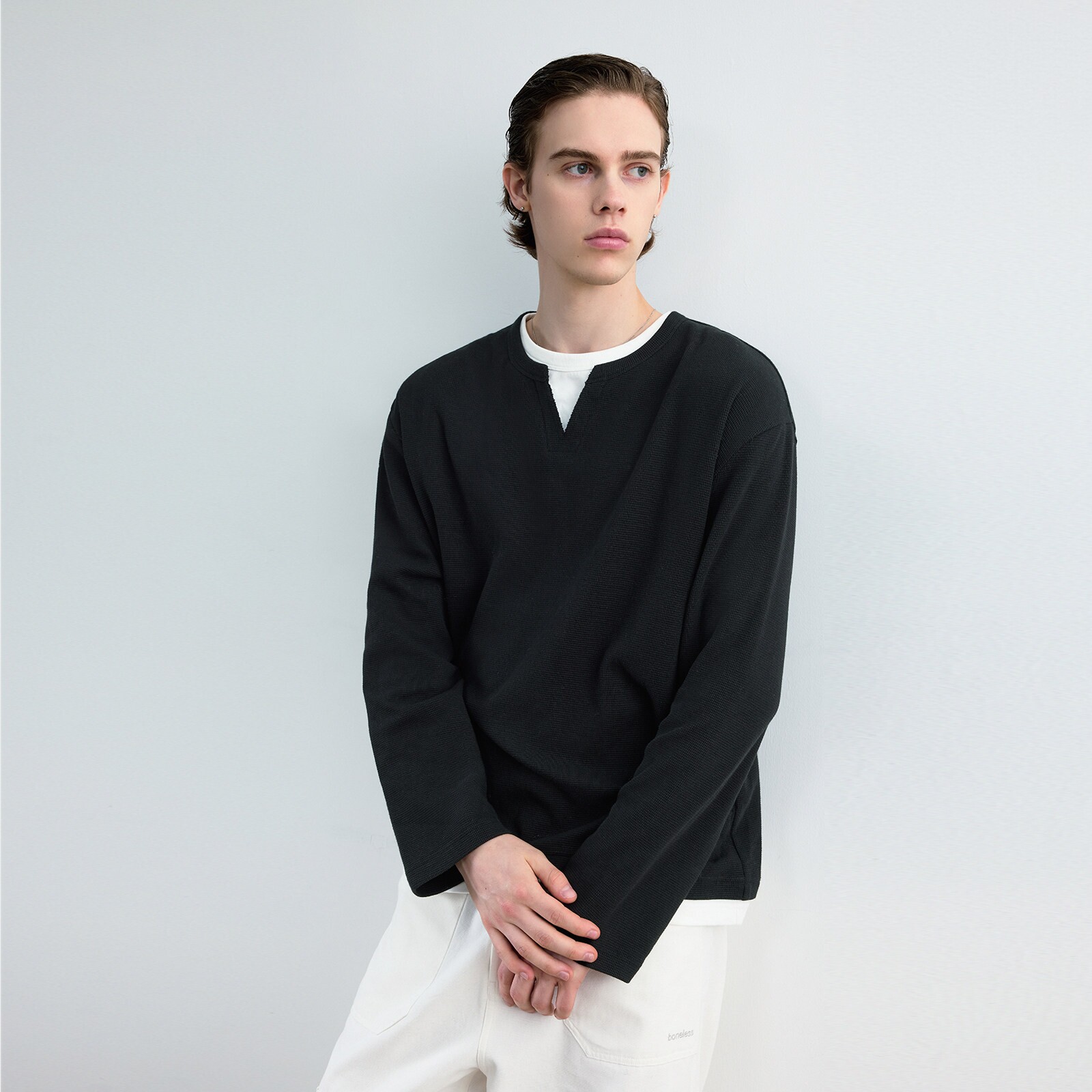 淘宝华夫格开叉叠穿假两件长袖T恤百搭上衣支线Essence by BONELESS