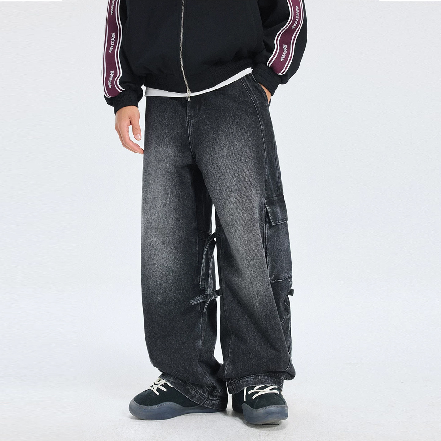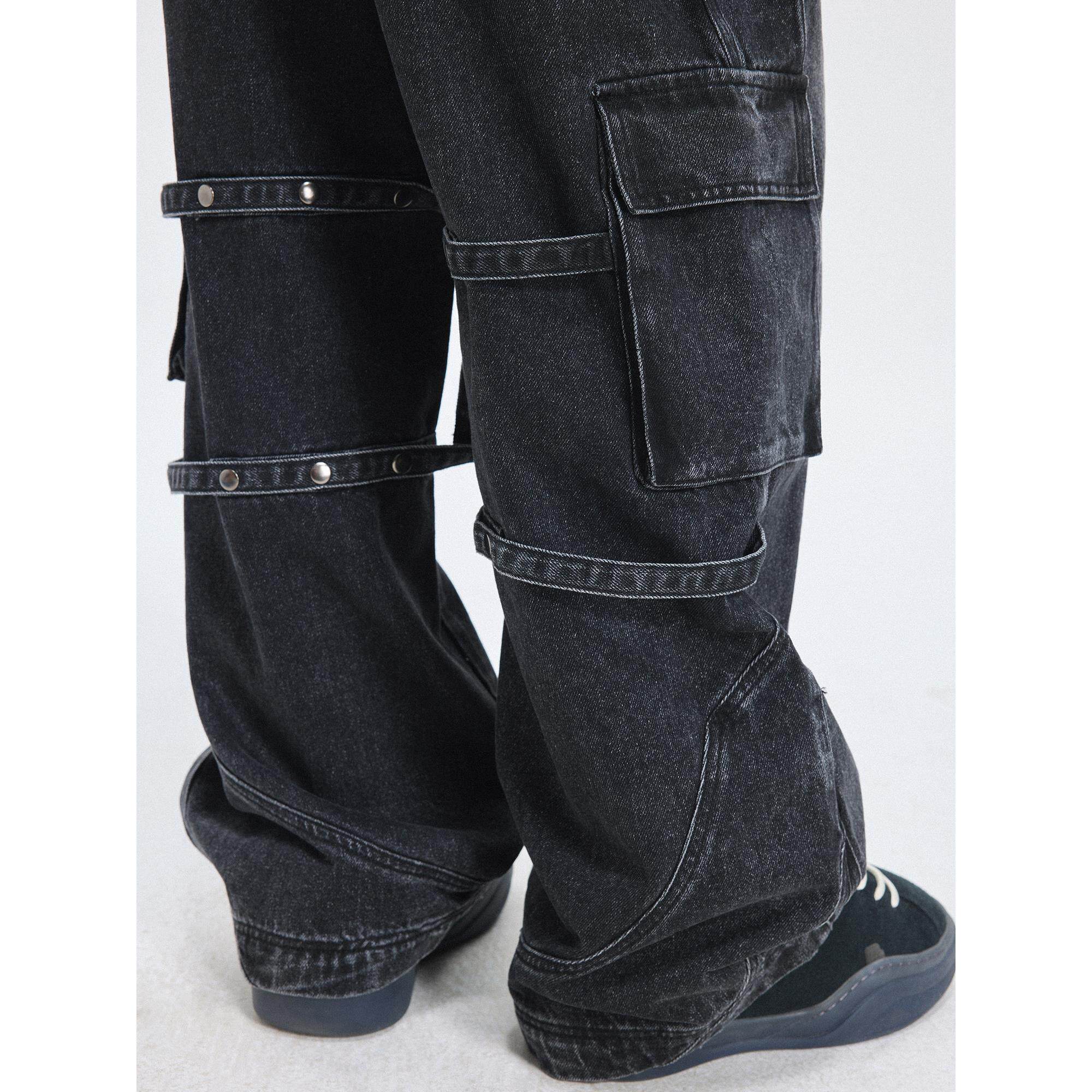 【蔡徐坤同款】BONELESS分割可调节牛仔裤复古设计感工装直筒长裤