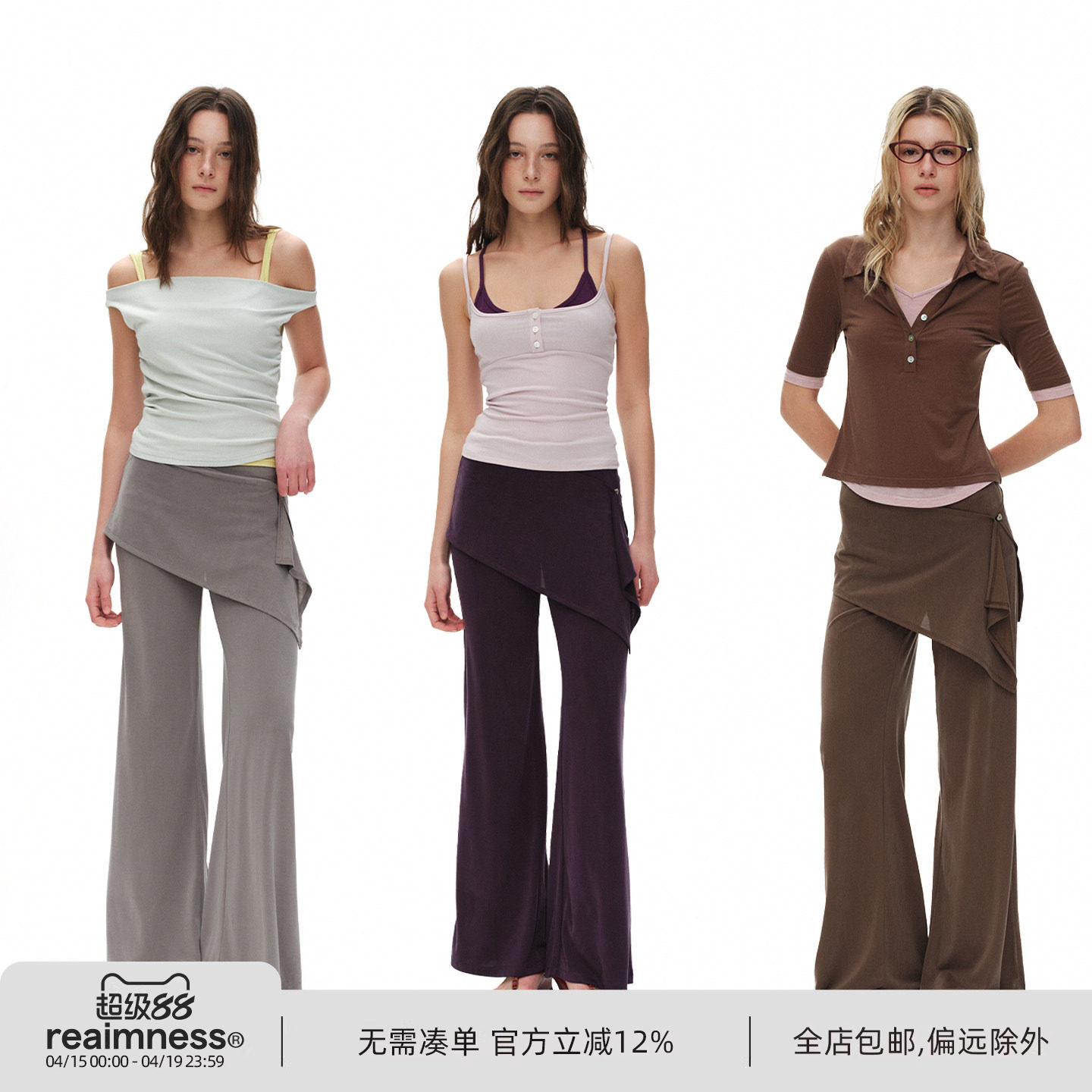 ReAimNess*砂洗雾面质感不对称裙片设计显腿长百搭休闲微喇长裤女