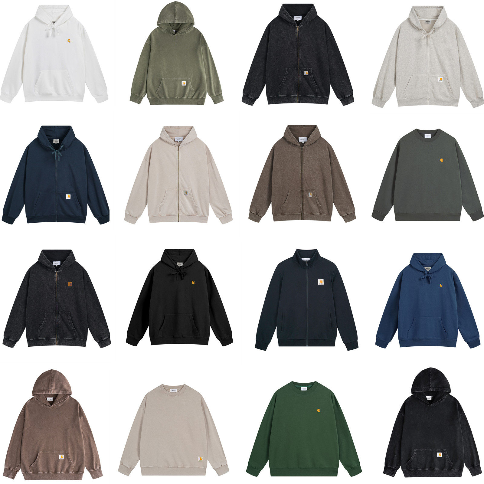 美式风连帽拉链小标毛圈卫衣秋冬男女情侣宽松休闲多色开衫外套
