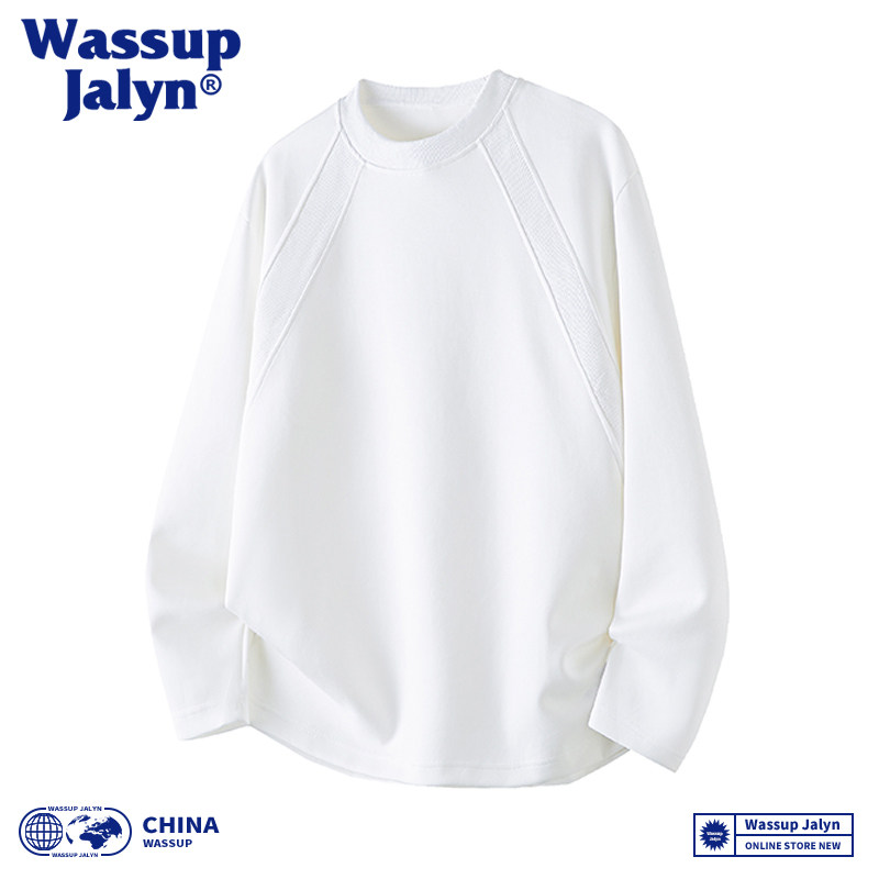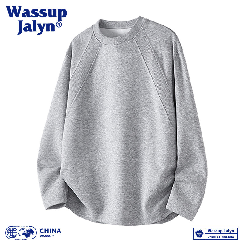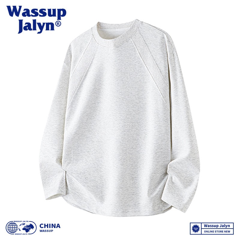 --------------------- WASSUP JALYN纯色简约圆领长袖T恤男秋季潮牌百搭宽松休闲上衣潮 【原售价】46.94元 【现售价】39.84元 【推荐理由】