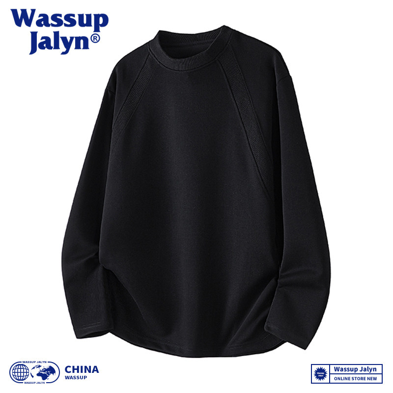 WASSUP JALYN纯色简约圆领长袖T恤男秋季潮牌百搭宽松休闲上衣潮