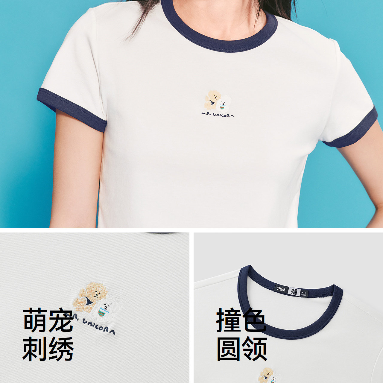 --------------------- 商场同款|森马插画师联名短袖T恤女夏季短款修身撞色2026新款上衣 【原售价】99元 【现售价】75元 【推荐理由】