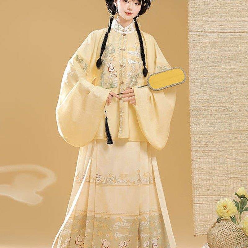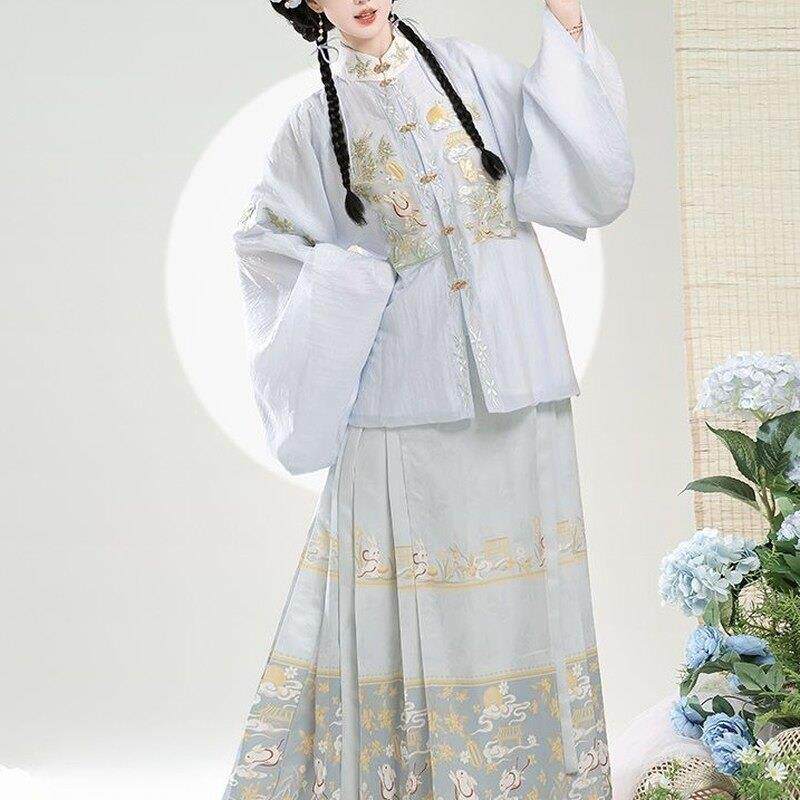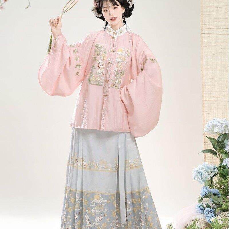 原创汉服女明制刺绣立领对襟琵琶袖补服袄春夏秋款马面裙提花古装