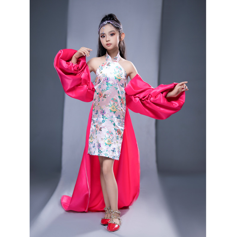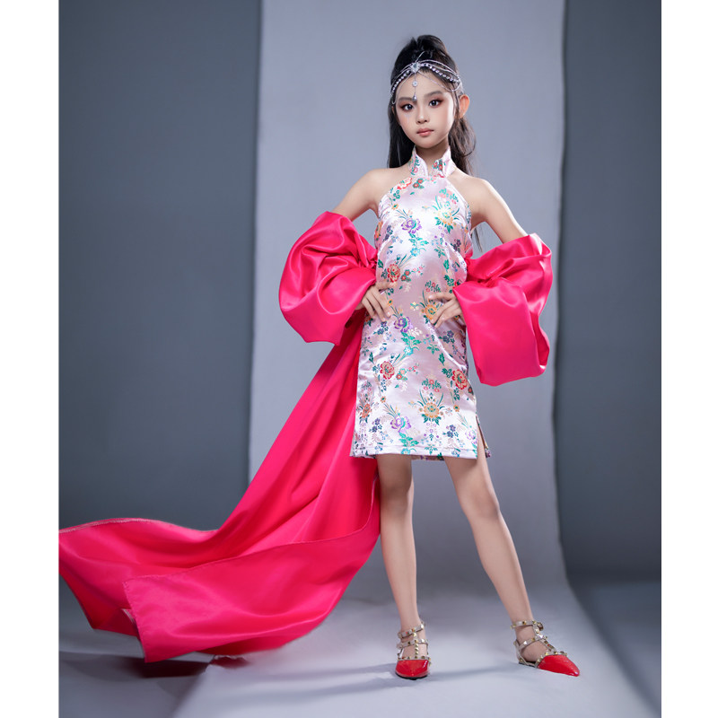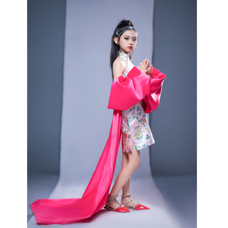 --------------------- 女童国潮旗袍拖尾中国风模特走秀童装新中式T台时装霸气玫红礼服 【原售价】280元 【现售价】180元 【推荐理由】