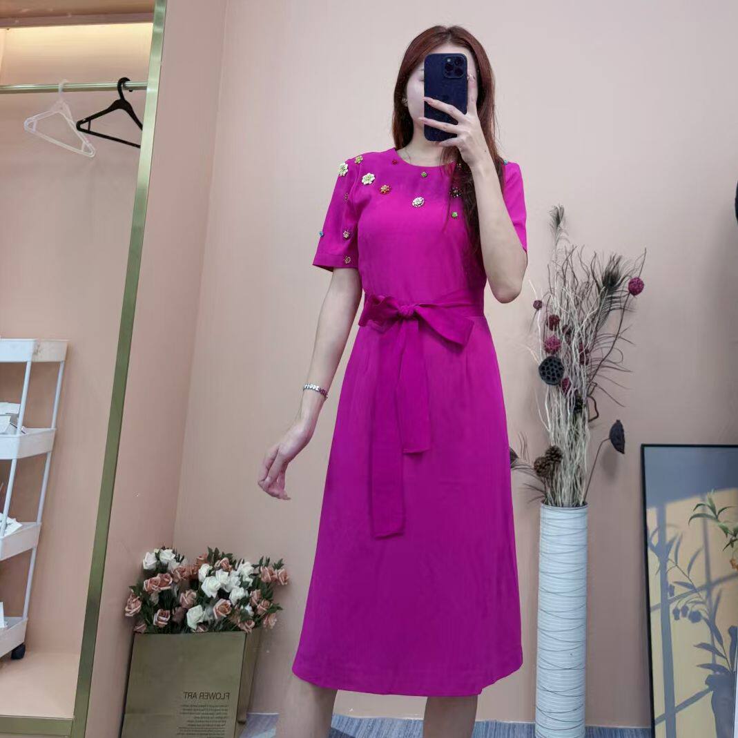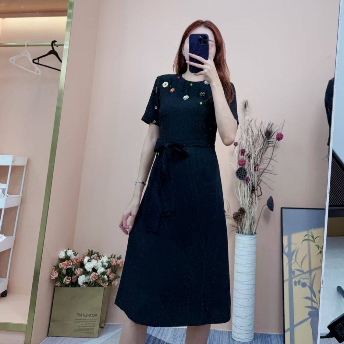 --------------------- [依易原创]高定设计感短袖赫本风绑带气质收腰钉珠礼服裙B0413 【原售价】79.9元 【现售价】79.9元 【推荐理由】