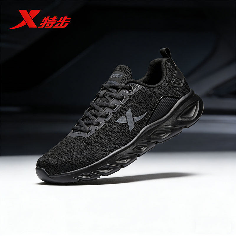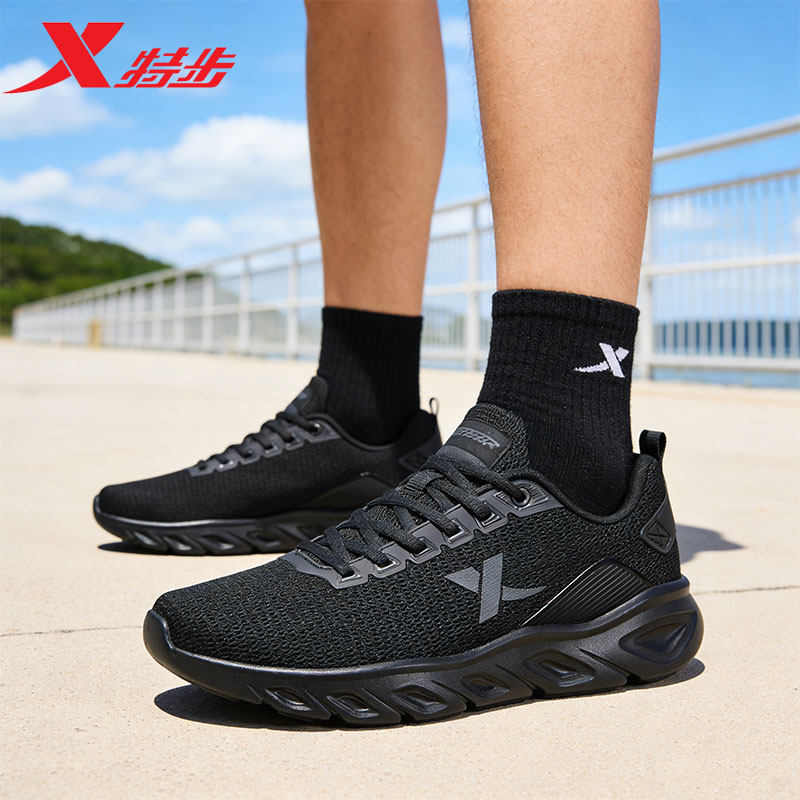 特步行云FW跑步鞋男网面透气运动鞋黑色减震跑鞋健步训练慢跑鞋男